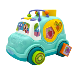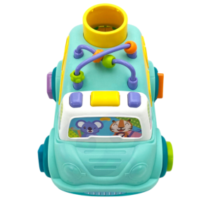 Brändi Woopie Musical Sorter on võluv pastelsetes toonides mänguauto, mis rõõmustab iga väikelast. See pakub palju võimalusi suhtlemiseks ja meelte stimuleerimiseks ning arendab ka lapse motoorseid ja loogilisi oskusi. Sisselülitamisel kostab auto müra, teeb mootorimüra ja mängib meeldivaid meloodiaid, mis ärgitavad last edasi mängima ja pakuvad talle rõõmu. Mänguautol on palju elemente, millega manipuleerida ja avastada. Laps saab kaasasoleva haamriga auto sees värvilisi palle lüüa. Seejärel lendavad pallid läbi sõiduki tagaluugi, mis pakub lapsele lisarõõmu ja üllatust. Auto külgedel on erineva kujuga augud ning mänguasjaga on kaasas värvilised klotsid, mis neisse aukudesse sobivad. Laps saab mängida, sobitades klotsid sobivate kujunditega, mis aitab tal arendada käe-silma koordinatsiooni ning värvide ja puuviljade äratundmist. Ratastel on ka klotsid, mida väikelaps saab vabalt välja võtta ja uuesti kokku panna. Helmed katusel, mida laps saab liigutada, harjutavad lapse osavust ja keskendumist. Omadused: – mänguasi, mis on mõeldud lastele alates 18. elukuust – võluv ja meeldiv välimus pastelsetes toonides – ideaalsed mõõdud väikestele kätele – sisaldab elemente manipuleerimiseks ja avastamiseks: kuulid, haamer, klotsid, helmed – eemaldatava esiklaasi taha asetatud patareid ja lüliti – mänguasi töötab 2×1,5 V AAA patareidega – motoorsete oskuste arendamise akud (ei kuulu komplekti)