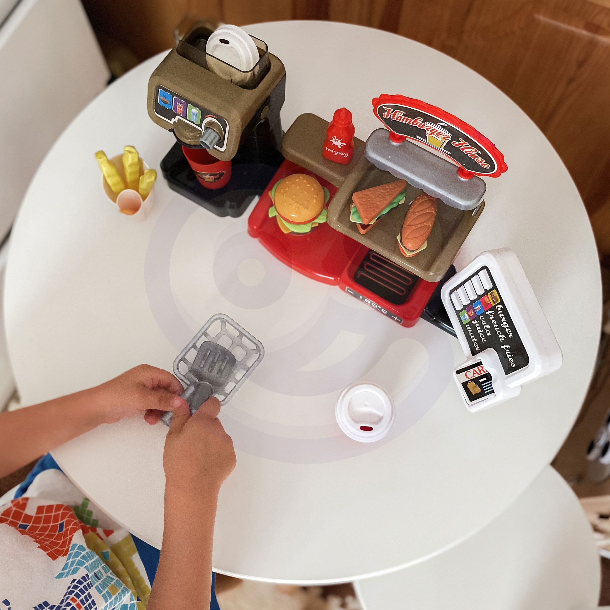 WOOPIE kaubamärgi kassaaparaadi ja dosaatoriga Fast Food XXL laseb teie lapse kujutlusvõimel lennata. Teie laps saab mängida sõpradega rollimängijat ja klienti. Laps võib pakkuda friikartuleid, mida ta on varem ise praadinud; tass joogiga, mis ise kallab; burger, röstsai ja võileib. Burgerit ja võileibu saate ise korraldada. Dosaatorisse saab valada päris vett. Selleks asetage tass selle alla, keerake nuppu ja valage ehtsat vett – see funktsioon rõõmustab teie last kindlasti! Klient saab maksta mänguasja krediitkaardiga, mis tühistamisel teeb häält. Kassaaparaadil on ka spetsiaalne helifunktsioon ning peale vastava nupu vajutamist saame kuulda selliseid menüünimesid nagu: “hamburger”, “friikartulid”, “koola”, “mahl” ja “vesi”. Täielik interaktiivne komplekt lapsele, mis võimaldab tal saada tõeliseks müügimeheks, arendades tema kujutlusvõimet ja loovust. Garanteeritud palju tunde sõpradega lõbusalt veedetud! Omadused: – mänguasi vanuses 3 aastat – heliefektid – menüüroad, krediitkaart – dosaatorist tõelise vee valamise funktsioon!!! – burgeri ja võileiva saate korraldada omal moel – rollimäng – müüja, klient – vajalikud patareid: 2x “AA” (ei kuulu komplekti)