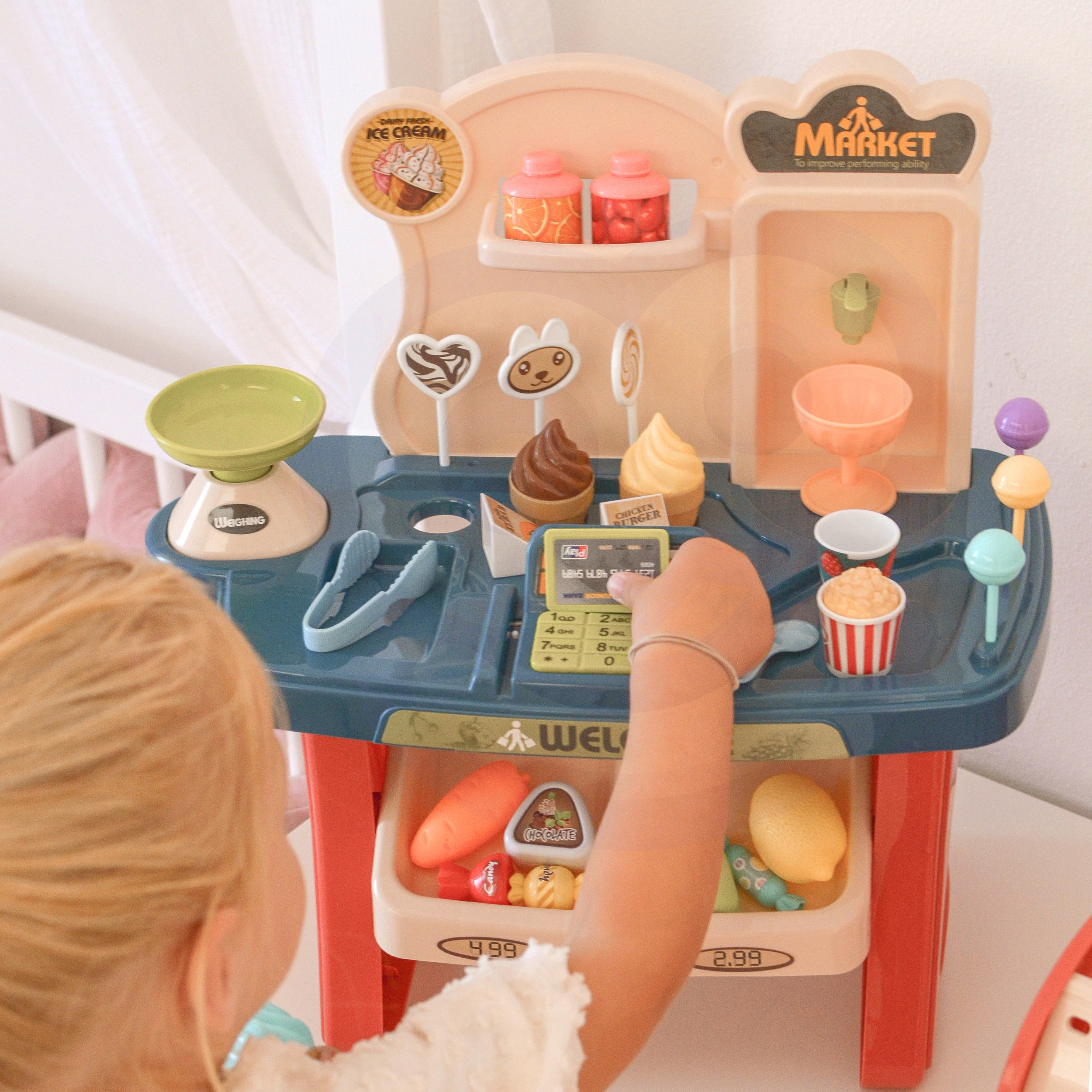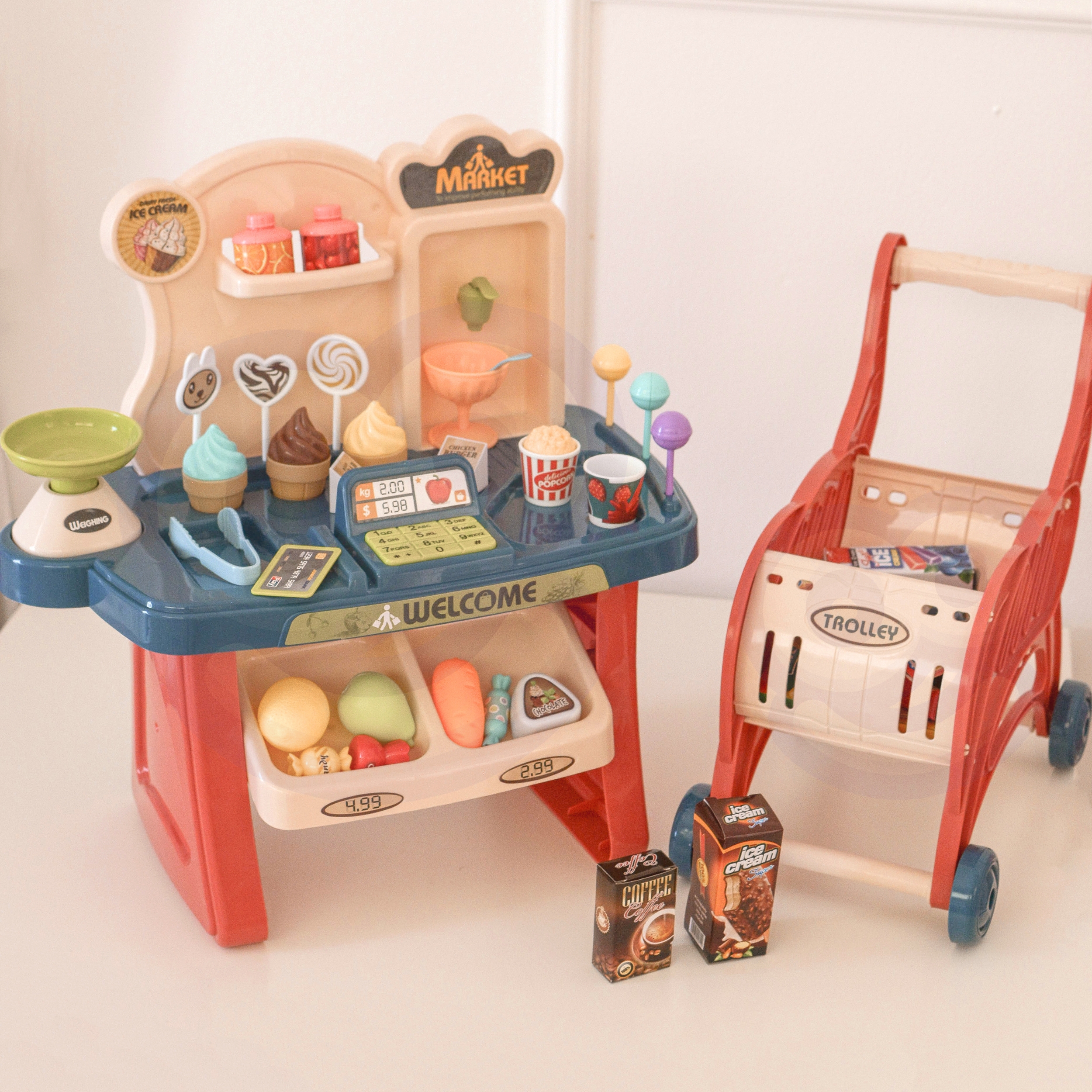 Toote mõõdud: supermarketi mõõdud: 38,5 x 37 x 20 (cm) / käru mõõdud: 29,5 x 30 x 17,5 (cm)
