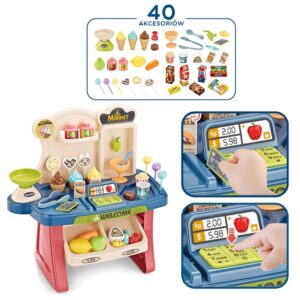 Ostukäruga supermarket on ideaalne komplekt teie noorimatele lastele. Pood on varustatud muusika ja välguga, mis kindlasti köidavad lapse tähelepanu ja julgustavad teda mängima. Supermarketi detailne esitus muudab toote väga realistlikuks, mistõttu on see ideaalne kingituseks. Mänguasi sobib suurepäraselt iseseisvaks mängimiseks ja sõpradega kohtumiseks. Lapsed saavad vaheldumisi täita kaupluse müüja ja kliendi rolli. Kui libistate krediitkaarti, vilgub märgutuli korra ja supermarketi kassast kostub “di” heli, mis tähendab, et kaart töötab korralikult. Klaviatuuri klahvi vajutamisel vilgub märgutuli korra ja supermarketi kassast kostab “deng” heli, mis tähendab, et makse on õnnestunud. Tunnused: – omab heli- ja valgusefekte, – õppimine läbi mängu – mängiv müügimees julgustab lapsi omandama esmaseid matemaatilisi ja finantsoskusi, – arendab kujutlusvõimet ja tagab sotsiaalse arengu, – toode on lastele ohutu, – vastupidavatest materjalidest elemendid. Komplekti kuulub: – Kaupluse kassaaparaat – Ostukorv – Maksekaardilugeja – 40 poe tarvikut, sealhulgas: – Kaalud – Jäätis – Pulgakommid – Puuviljad – Köögiviljad – Maiustused Mänguasi arendab: – Kujutlusvõimet ja loovust – Sotsiaalseid oskusi – Kognitiivseid oskusi – Peenmotoorikat – Kõne arendamine – Et lapsed saaksid õnnelikuks Woopie brändi mänguasjad! Rikkalikust sortimendist leiab Woopie muuhulgas karnevalikostüüme ja kostüüme lastele, aga ka rippkiikesid, vahtplastist mänguasju, erinevat tüüpi aiamänguasju ja palju muud! Laske end lõbusalt kaasa haarata – laske end Woopil kaasa haarata!