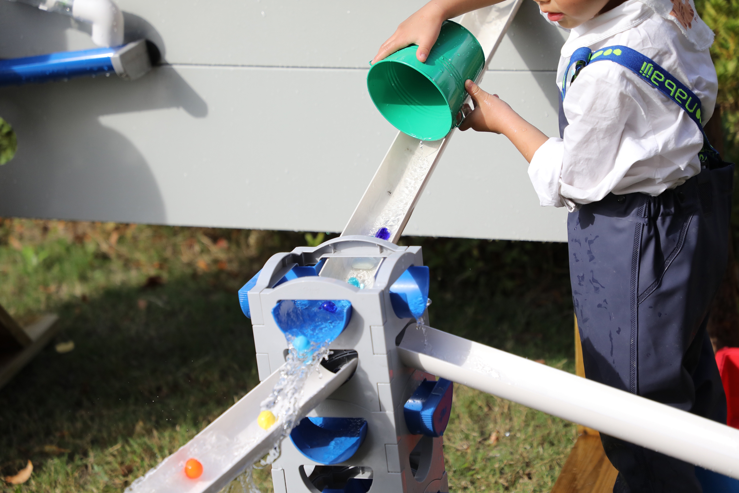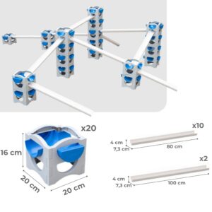 CLASSIC WORLD Water Conducting Tubes Set on loodud lastele mõeldes, mistõttu on see täiesti ohutu ja vastupidav. Lapsed ise otsustavad mänguväljaku paigutuse ja konfiguratsiooni üle. Torni saab seada erinevatele kõrgustele ja erinevatele konfiguratsioonidele, kasutades vett, liiva, palle ja mänguautosid – tänu sellele saavad lapsed nautida mitmekülgset lõbu mitte ainult kuumadel päevadel. See sobib suurepäraselt aia täienduseks või CLASSIC WORLD kaubamärgi veemänguväljaku elemendiks. Omadused: – Alates 3. eluaastast – Töötab sensoorse mänguasjana vee ja liivaga – Võimaldab jälgida vee liikumist ning õppida põhjust ja tagajärge – Hea töökvaliteet – Paljud seadistuskonfiguratsioonid – Pikk ja lõbus Komplekti kuulub: – 20 veekuubikut – 12 veetoru