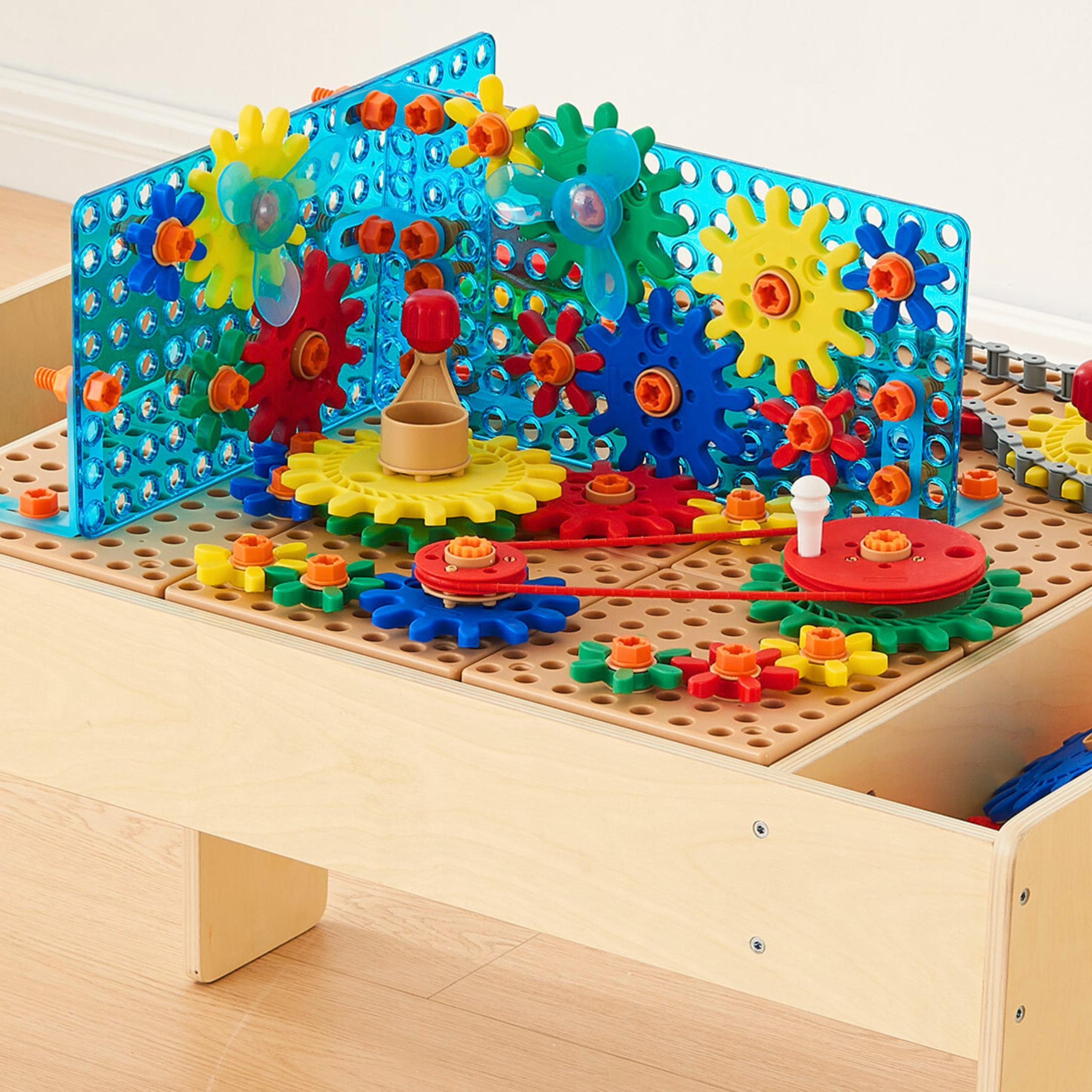 Masterkidzi puidust STEM-laud on ideaalne täiendus igasse koolieelsesse või algklassiruumi, STEM-laual on STEM-paneelid, mis ühilduvad paljude STEM-tarvikutega. Tänu madalale horisontaalsele pinnale saavad lapsed töötada istudes või seistes, üksi või rühmas. Lauad on tugevad ja piisavalt suured, et lapsed saaksid luua keerukaid projekte või lahendusi. Laua mõlemal küljel asuvad sisseehitatud kandikud võimaldavad esemeid hõlpsalt hoiustada. Komplektis on lai valik elemente, mis julgustavad lapsi ise mehaanilisi seadmeid ehitama ja looma, aga ka seinu, mis võimaldavad mehhanisme 3-mõõtmeliselt laiendada. Omadused: – Lastele alates 3. eluaastast – Valmistatud kvaliteetsetest materjalidest – Laua mõlemal küljel on sisseehitatud kandikud, mis hõlbustavad elementide korrastamist ja kiiret konfiguratsiooni muutmist. – Laia valiku tarvikutega ühilduvad STEM-paneelid võimaldavad luua lihtsaid ja keerukaid mehaanilisi kujundusi. – Madal horisontaalne tööpind soosib iseseisvat tööd ja ühiseid katsetusi paaris ja meeskonnas. Komplekti kuulub: – Puidust STEM laud – Süsteemitarvikutega ühilduvate STEM paneelide komplekt. – 34 käiku – 4 rihmaratast – ketiratta veokett – 2 rihmaratta ajamirihma (2 erineva pikkusega) – 6 valget tihvti – 76 kruvi (kolmes erinevas suuruses) – 40 mutrit – 16 kronsteini – 4 lamedat tuge – 2 seina ehituseks – 2 tuulikut – toode arendab loogilisi oskusi – 3 käepidet: Kujutlusvõime – Probleemide lahendamise oskus – Suhtlemisoskus