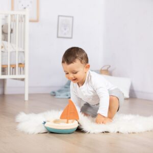 Little Smoby sari loodi kõige väiksematele lastele mõeldes. Siit leiate palju mänguasju – garaaže, sõiduteid, kööke ja väikseid mänguasju. Kõik on tehtud pastelsetes toonides. Need on laste poolt armastatud mänguasjad – täiesti uues versioonis. Lastele meeldib liivas või vees mängida. Keskkonnast hooliv Smoby tutvustab Green kollektsiooni – suhkruroost taimsest plastikust mänguasju. Omadused: – sinimustvalge purjekas, mis on mõeldud vees mängimiseks, – purjel on keeratud puri ja selle juhtimiseks liigutatav rootor/propeller, – sellel on konks nööri kinnitamiseks, – ujub vee peal, – valmistatud bioplastist – taimne plast suhkruroost, – papppakend on 100% taaskasutatud.