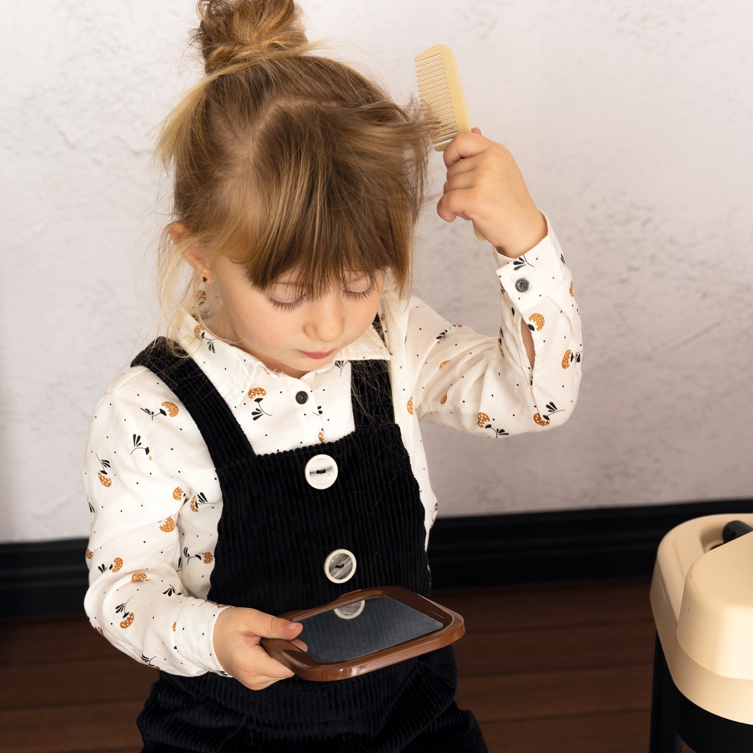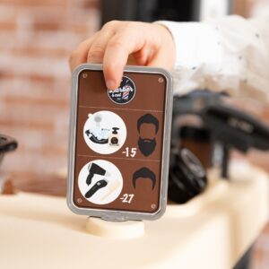 Lastele meeldib täiskasvanuid jälgida ja jäljendada. Sarja My Beauty komplektis Barbera Center on ühendatud kolm tsooni – juuste ja habeme kujundamise ala, pesulapi ja dušiga hooldusnurk ning makseterminali tsoon. Komplektis on 19 mängimiseks vajalikku tarvikut. Omadused: – Barbera keskuses on ühendatud 3 tsooni – juuste ja habeme kujundamise ala, hooldusnurk pesulapi ja dušiga ning maksetsoon makseterminaliga, – komplekti kuulub 19 tarvikut – pardel, hari, käärid, kamm ja konteinerid šampooni ja kosmeetika jaoks, – selles on peegel, hoiuruum, tualettlaud, tualettlaud pesutsoon kraanikausiga koos duši ja nupuga vee väljastamiseks, – maksetsoonist leiate kassaaparaadi, lukustatud sahtli, makseterminali, kviitungid, maksekaardi ja hinnakirja pakutavate hooldustega.
