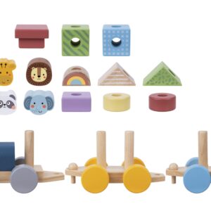 Tooky Toy puidust rong on mänguasi, mis mitte ainult ei paku meelelahutust, vaid arendab ka kujutlusvõimet, koordinatsiooni ja käelisi oskusi. Rong koosneb vedurist ja kahest vagunist, värvilistest plokkidest, mille hulgas on kaelkirjak, lõvi, elevant ja pandakaru, mida saab igati kombineerida. See annab lastele piiramatud võimalused loominguliseks loominguks. Vagunite küljes on pulgad, millele saab aukudega klotse panna. Omadused: – mänguasi lastele alates 18. elukuust – komplektis on 16 tk. – klotside vaba paigutus vagunitel – erinevad värvid ja kujundid, mis jäävad lapsele silma Mänguasi arendab: – loovat mõtlemist – kujutlusvõimet – motoorset koordinatsiooni