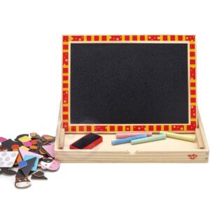 Kahe lauaga magnetpusle TOOKY TOY on ideaalne kingiidee lapsele alates 3. eluaastast. Komplekti kuulub puidust padi, millele saab asetada kahepoolse tahvli. Ühel pool on kriiditahvel ja teisel pool magnettahvel. Need kaks tahvli funktsiooni rõõmustavad iga väikelast. Laps saab seda kasutada vastavalt oma eelistustele ja soovidele. Klotside värvid ja kujundid võimaldavad loomingulist mängu. See tahvel ergutab kindlasti teie väikese kujutlusvõimet. Lõbus garanteeritud! Omadused: – komplekt sisaldab 85 elementi, – komplekti kuuluvad: tahvel, kriit ja švamm, – tahvel on valmistatud kvaliteetsest puidust, – värvitud mittetoksiliste värvidega, – puuduvad teravad servad, mis muudavad selle lastele ohutuks. Mänguasi arendab: – loovust, – kujutlusvõimet, – kunstilisi oskusi, – võimet ära tunda värve ja kujundeid, – motoorseid oskusi, – teadmisi füüsika põhimõtetest. Tooky Toy on puidust lastele mõeldud mänguasju tootev ettevõte, mis on turul olnud alates 2004. aastast. Mitmeaastane kogemus selles valdkonnas on laste turvalisust silmas pidades valmistatud kvaliteetsete toodete tagatis. Tooky Toy mänguasjadel on arvukalt sertifikaate, mis kinnitavad nende ökoloogiliste toodete ohutust. Hästi silutud, kildude ja teravate servadeta mänguasjad on kaetud ainult ohutute, mittetoksiliste värvide, värvainete ja lakkidega. Kõik see muudab Tooky Toy mänguasjad armastatuks laste seas ja vanemate poolt üle kogu maailma.