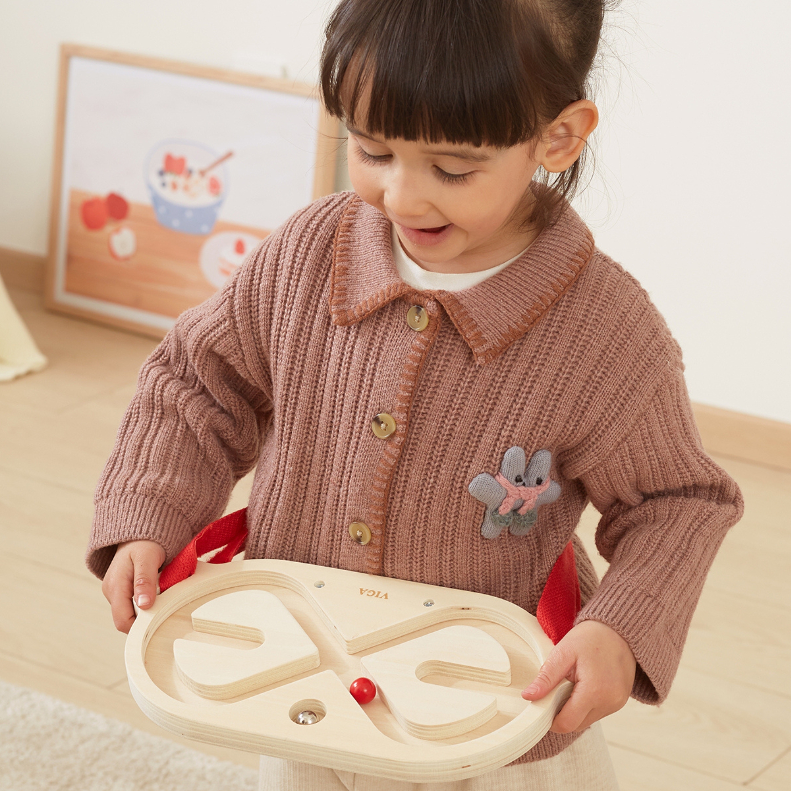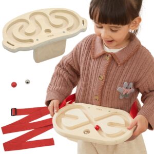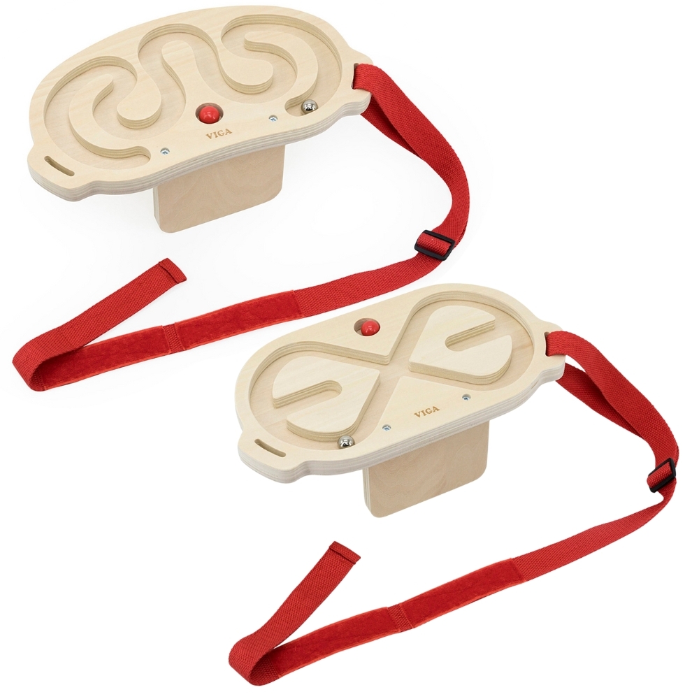 VIGA Keha tasakaalustamise labürindi komplekt on uuenduslik liikumismäng, mis haarab kaasa kogu keha, arendades koordinatsiooni ja tasakaalu. Tänu kahele puidust labürindile ja erineva raskusega pallidele muutub mäng lastele põnevaks väljakutseks. Mängijad panevad labürindi vöö ümber vöökoha, rinna, jalgade või käte ning liigutavad seejärel oma keha, et pall liikuma panna ja läbi labürindi juhtida. Mänguasju saab kasutada üksi või võistelda paaris, mis lisab mängule dünaamikat ja lõimib osalejaid. Omadused: – Vanus: 3 aastat – Vöö ümbermõõt: 46 cm – 95 cm – Labürindi mõõtmed: 29,2 x 15,4 x 10 cm ja 28,8 x 15 x 10 cm – 2 puidust labürinti: väljakutse motoorseks koordinatsiooniks – 2 palli: hele puidust ja erineva tasemega saab kinnitada raskema metalli külge. või rind, rind, jalad või käed – Üksi või paaris mängimine: erinevad mänguvariandid Mänguasi arendab: – motoorset koordinatsiooni: harjutab täpseid liigutusi ja keha juhtimist – Tasakaalu: õpetab stabiliseerima ja parandab kehahoiakut – Jämemotoorikat: haarab liikumisel kaasa erinevaid lihasgruppe – Keskendumine ja kannatlikkus: nõuab keskendumist ja täpsust palli juhtimisel – palli juhtimisel ja sotsiaalseid oskusi.