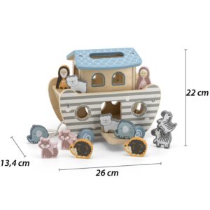 VIGA PolarB Noa laeva sorteerija – kaunites pastelsetes toonides värviline sorteerija on mänguasi, mis meeldib igale lapsele. Komplektis on laev, Noa ja tema naise figuurid, samuti 5 erineva loomapaari figuurid. Mänguasi on varustatud avanevate ustega, tänu millele pääsevad pardale kõik reisijad. Paadil on lisaks kandesang. Toode on mõeldud üle 18 kuu vanustele lastele. Kaunis töötlus ja värvid pakuvad kindlasti igale lapsele huvi! Tunnused: – sorteerija – lapse ülesanne on sobitada loomad sobivasse auku, et nad läheksid teisele poole, – komplekt koosneb laevast, Noa ja tema naise kujust ning 5 erinevast loomapaarist: elevandid, siilid, sebrad, kaisukarud ja rebased kõndida, – paadi ülaosa on kergesti eemaldatav, – kogu JÄÄKARU mänguasjade seeria lõi firma VIGA, et vastata lapsevanemate ja laste ootustele mängu kaudu oma arenguprotsessi parandamisel, – mänguasi on valmistatud lakitud puidust ja värvitud mittetoksiliste pastelsetes toonides värvidega, mis pakuvad igale kasutajale rahulolu ja pakuvad palju mängulusti. Mänguasi arendab: – silma-käe koordinatsiooni, – käelisi oskusi, – kujutlusvõimet, – loovust, – loogilist mõtlemist, – värvide ja vormide äratundmist. Ökomänguasjad on suunatud kõige väiksematele lastele ning on valmistatud täiesti looduslikest, biolagunevatest ja hüpoallergeensetest materjalidest, muutes need 100% ohutuks ja kahjutuks mitte ainult keskkonnale, vaid ka teie lapsele. Viga on bränd, mis registreeriti 2003. aastal, kuid on juba esindatud enam kui 60 riigis üle maailma. Nende uuenduslikud ideed pälvisid muu hulgas tunnustust. Euroopas, USA-s, kauges Austraalias ja Jaapanis. Ettevõtte asutajad juhtisid tähelepanu uurimistulemustele, mis näitavad mängu ja õppimise seost laste arengu algusaastatel. Et aidata lapsevanematel ja õppeasutustel lapsi kasvatada ning päästa neid virtuaalmaailmast, mis võib oluliselt moonutada tegelikkust, pakub tootja uuenduslikku sortimenti, mis on valmistatud ökoloogiliste tootmisprotsesside käigus saadud looduslikest materjalidest. Puittoodete ohutus ja kvaliteet on Vigi jaoks prioriteet, tootja on jälginud, et mänguasjade värvimisel kasutatavad värvid vastaksid EN71 ja ASTM ohutusstandarditele.