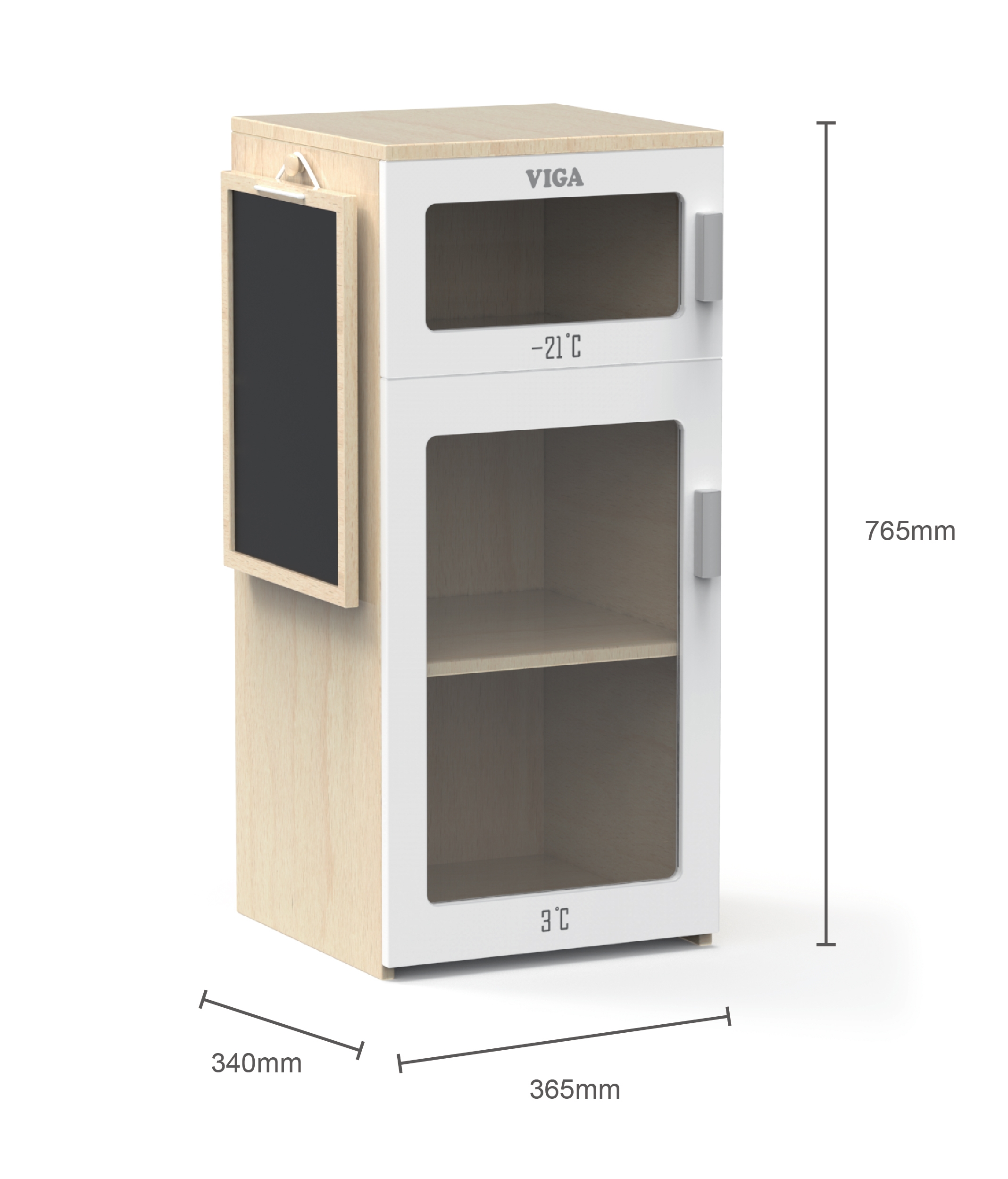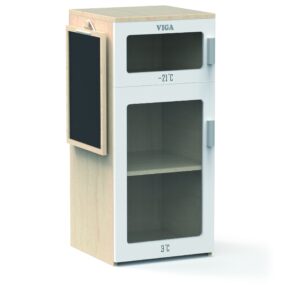 Täiendage oma lapse mängunurka võluva puidust Viga külmikuga. See realistlik mänguasi on suurepärane viis kujutlusvõime ja loovuse arendamiseks maja mängides. Külmikul on kaks kambrit – sügavkülmik ja jahuti, nii et laps võib ette kujutada, et ta hoiab oma tooteid sobival temperatuuril. Lisaks on külmiku uksel kriiditahvel, kuhu teie väikelaps saab ostunimekirja üles kirjutada või joonistada. ✅ Omadused: ✔️ Mänguasi vanuses 3 ja vanemad. ✔️ Valmistatud kvaliteetsetest mittetoksilistest materjalidest, lastele ohutu. ✔️Külmkapp võimaldab lapsel mängida koka rolli ja arendada loovust. ✔️Laps õpib toitu hoidma.✔️Külmkapp näeb väga esteetiline välja ja saab iga laste köögi kaunistuseks.