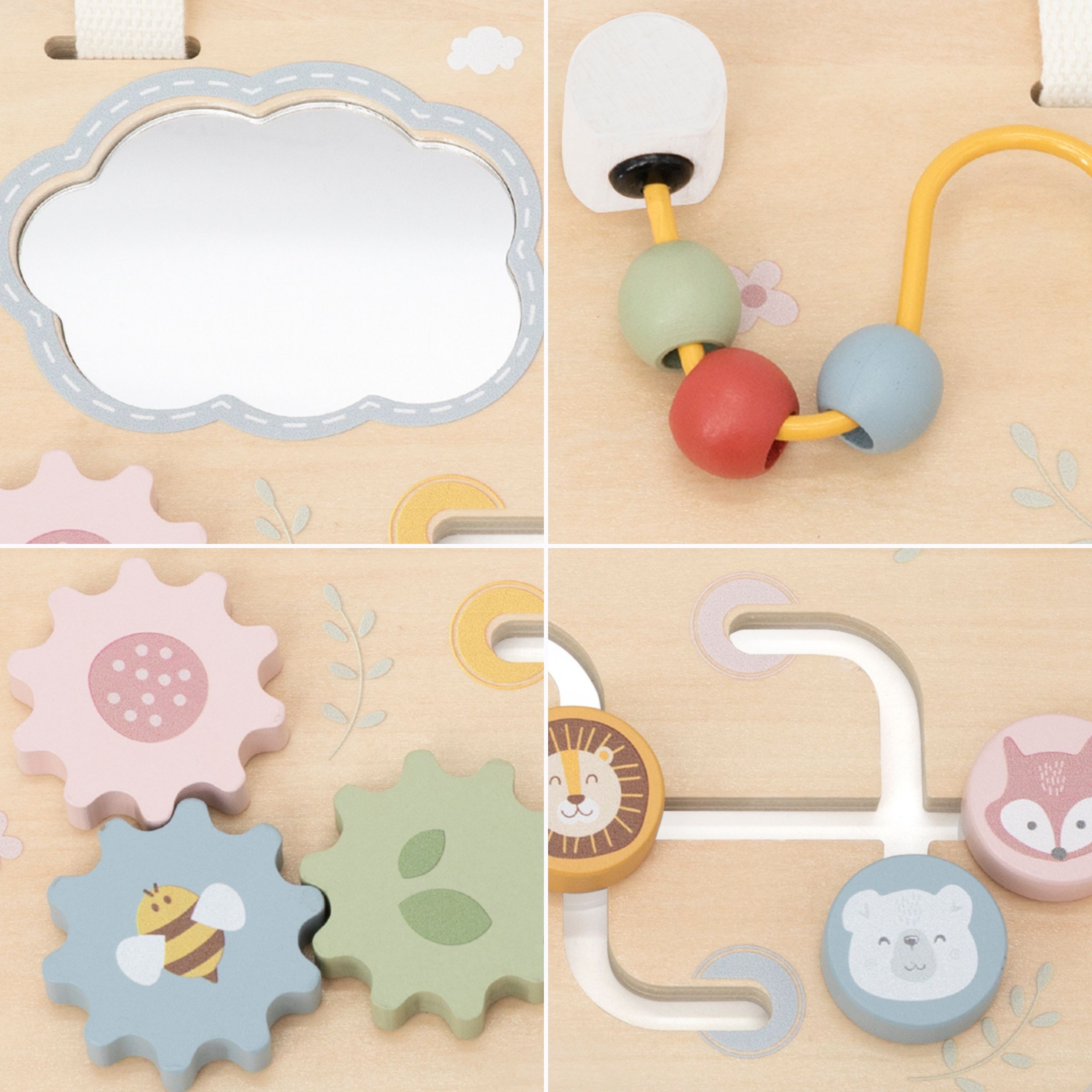 PolarB seeria Viga puidust manipuleerimislaud on ideaalne hariv mänguasi maailma kõige pisematele avastajatele. See sisaldab elemente, mis köidavad lapse tähelepanu – peegel, helmestega labürint, hammasrattad ja liugur. Igaüks neist toetab sensoorset arengut ja õpetab motoorset koordinatsiooni läbi mängu. Tänu pastelsetele värvidele ja meeldivale puudutusstruktuurile ergutab laud meeli ja julgustab katsetama. See on täiuslik kingitus, mis ühendab ohutuse, esteetika ja funktsionaalsuse ühes tootes! Omadused: – Mõeldud lastele alates 12. elukuust – Valmistatud kvaliteetsest turvalisest puidust – Pastelsetes toonides – õrnad ja silmasõbralikud – 4 puuvillast takjapaela võrevoodi või jalutuskäru külge kinnitamiseks – Saab kasutada ka tasasel pinnal – Toetab õppimist läbi puudutuse, liikumise ja vaatluse Komplekti kuuluvad: – Peegel – Labürint koos helmestega – S traadil libisemine 4 takjapaelaga puuvillast riba kokkupanemiseks Mänguasi arendab: – Puutemeelt ja silma-käe koordinatsiooni – Peenmotoorikat ja sõrmede osavust – Uudishimu maailma vastu ja iseseisev avastamine – Sensoorset arengut ja loogilist mõtlemist – Tähelepanu ja keskendumisvõimet