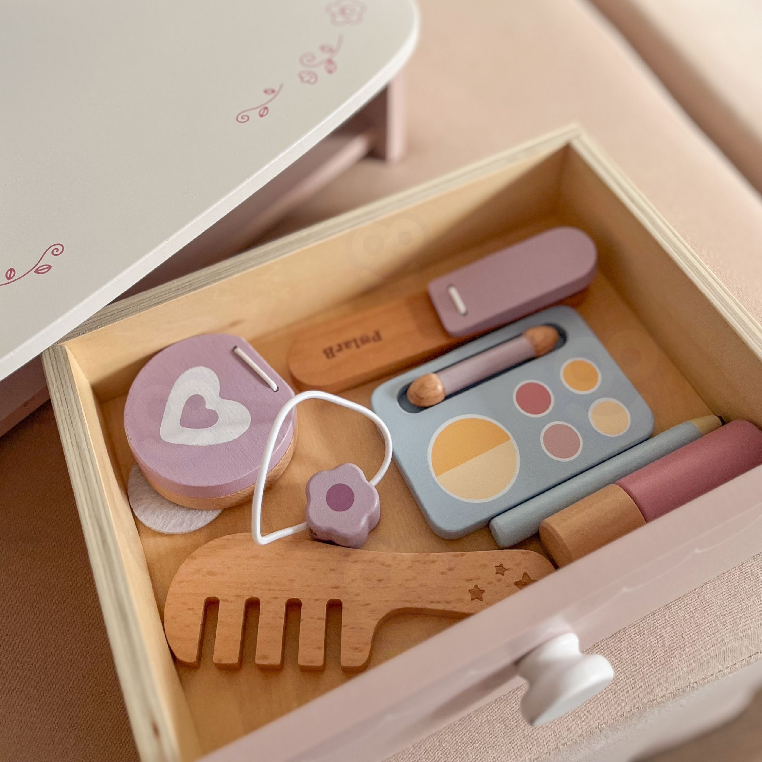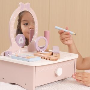Viga puidust tualettlaud väikese printsessi nurgatarvikutega