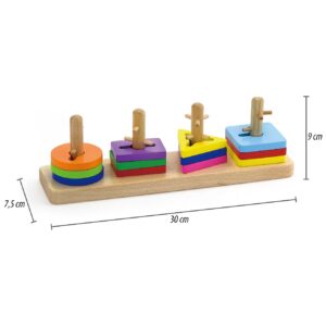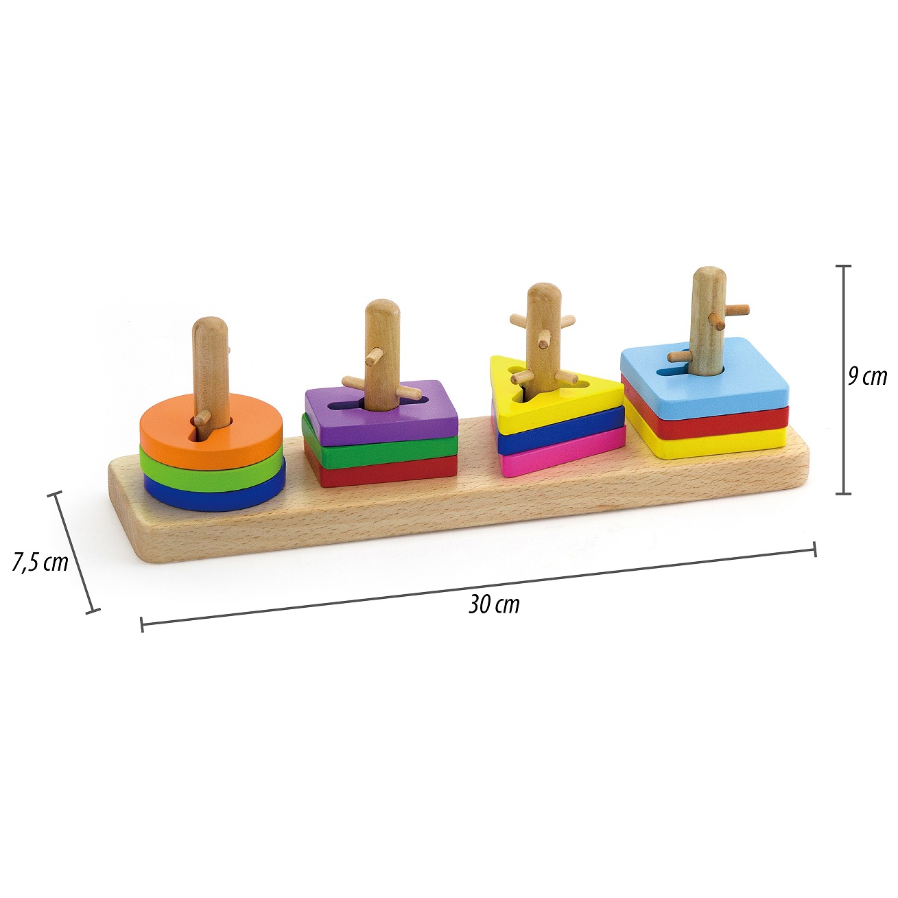 Viga puidust geomeetriline sorteerija on hariv mänguasi loendama ning kujude ja värvide eristamiseks. Igale viiele võllile tuleb asetada sobivad kujundid ja selle pealtnäha lihtsa mängu teeb keerulisemaks see, et klotsid tuleb sobitada sobivate eenditega. Mängides arendab laps käelisi oskusi, käe-silma koordinatsiooni ja loogilist mõtlemist. Erksad värvid püüavad beebi pilku ja ergutavad seda meelt. Sorteril puuduvad teravad servad ning mittetoksiliste värvide kasutamine tagab ohutuse lastele ja keskkonnale. Omadused: – komplekt sisaldab 12 elementi, – mänguasi on puidust, – värvitud mittetoksiliste värvidega, – sorteerija on teravate servadeta ja hästi poleeritud, – mänguasi on lastele 100% ohutu. Mänguasi arendab: – käelisi oskusi, – loogilist mõtlemist, – käe-silma koordinatsiooni, – värvide ja kujundite äratundmise oskust, – loendamise õppimist, – nägemismeelt.
