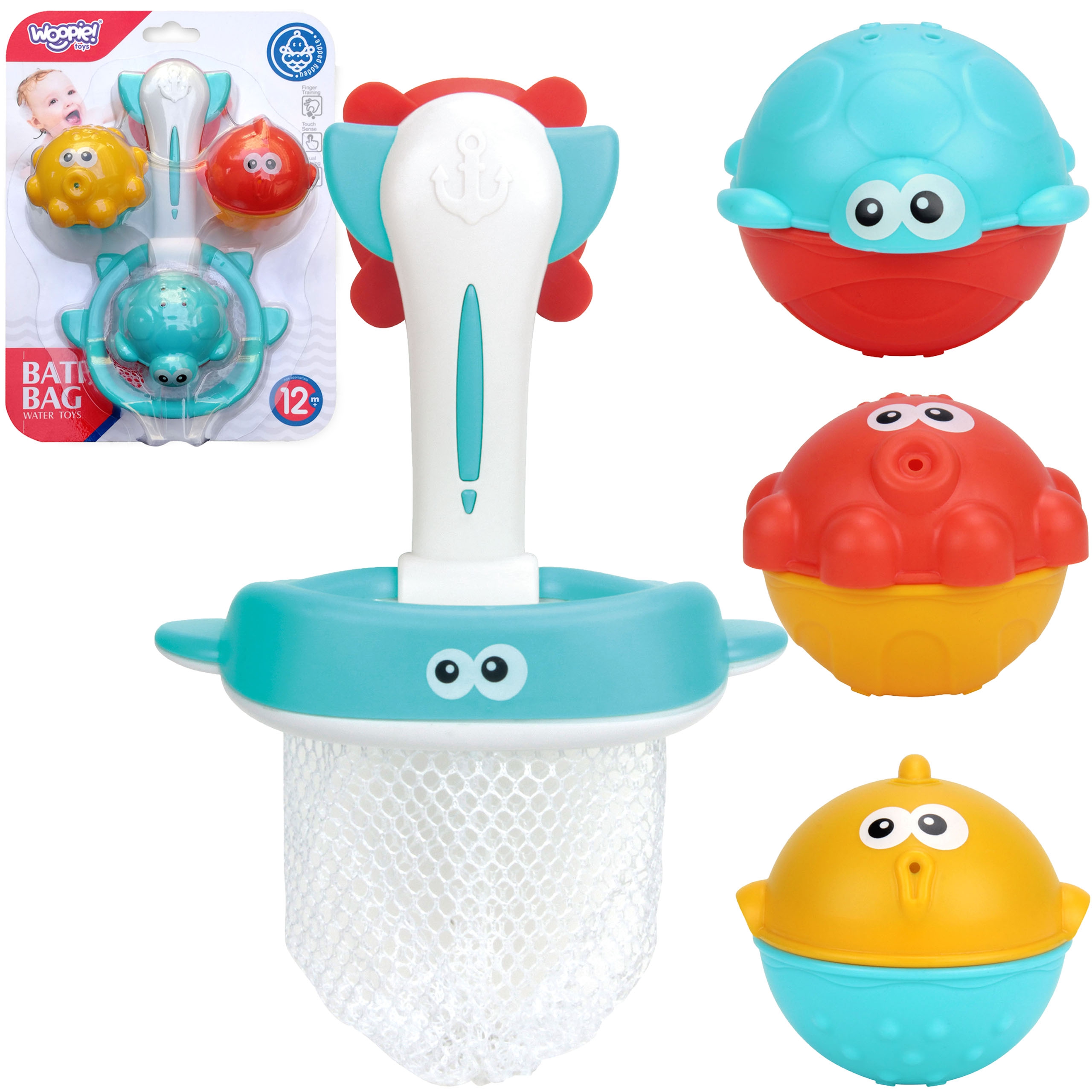 Brändi WOOPIE veemänguasjade komplekt on suurepärane täiendus teie lapse vannile. Mängides saab laps palle võrku püüda või sinna visata. Komplekt mitte ainult ei muuda vannisaega nauditavamaks, vaid arendab ka lapse käelisi oskusi ja teadlikkust ümbritsevast maailmast ning eelkõige võimaldab see lapsel pesemise ajal keskenduda ja endaga tegeleda. Omadused: – mänguasi alates 12 kuu vanusest – komplektis on 4 tk. – vannikomplekt – arendab käelisi oskusi ning silma-käe koordinatsiooni – tippkvaliteetne töö – rafineeritud detailid Komplekti kuulub: – kalavõrk – 3 loomapalli
