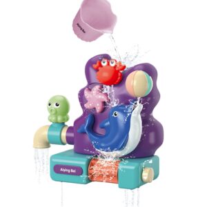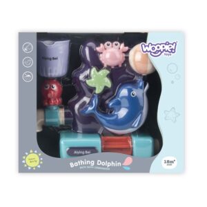 Brändi WOOPIE veemänguasi Animals pakub teie lapsele vannitamise ajal huvitavat aega. Laps valab tassi abil ülevalt paaki vett. Krabist vett valades tilgub vesi pöörlevale meritähele ja pallilt langeb vesi otse delfiini suhu. Lõpus valatakse vesi joana vasakpoolsest kraanist ja delfiini all olevale rullile, mis samuti pöörleb. Laps saab rulli kiiruse reguleerimiseks kasutada parempoolset ratast. Lisaks on selle taga kolm iminappa, nii et saate selle kinnitada vannitoa seina või vanni külge. Mänguasi ei muuda mitte ainult vannisaega meeldivamaks, vaid arendab ka lapse kujutlusvõimet, käelisi oskusi ja teadlikkust ümbritsevast maailmast ning eelkõige võimaldab see lapsel pesemise ajal keskenduda ja endaga tegeleda. Omadused: – mänguasi alates 18. elukuust – komplekt hoiab lapsel vannis käies meelelahutust ja keskendumisvõimet – vesi niriseb loomadest alla ja voolab kraanist ja rullist välja – meritäht ka pöörleb – laps saab juhtida rulli kiirust ja suunda – sellel on 3 iminappa, nii et saate selle kinnitada vannitoa seinale või vannile – sisaldab kvaliteetseid Dolphmani komplekti ülevoolukraan – Tass vee valamiseks Mänguasi arendab: – Käelised oskused – Teadlikkus ümbritsevast maailmast – Kujutlusvõime – Keskendumine suplemise ajal