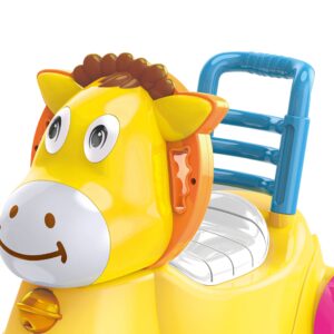 WOOPIE kaubamärgiga panipaigaga tõukur on mitmekülgne mänguasi aktiivsetele beebidele. Ohututest ja vastupidavatest materjalidest valmistatud toode pakub kolme funktsiooni, mis toetavad lapse arengut erinevatel etappidel. Täiendava seljatoega kinnitatud pealesõidufunktsioon aitab beebidel kõndima õppida, ärgitades samas nende mängu- ja liikumisarmastust. Nende oma ”sõiduk” julgustab lapsi maailma avastama ja võimaldab neil tunda rõõmu iseseisvast sõidust. Käru on ideaalne tugi beebidele, kes alles hakkavad esimesi samme tegema. Tänu sellele on beebil liikumisel täiendav tugi, mis parandab tema tasakaalu ja koordinatsiooni. Lõpuks on potiiste funktsioon, mis aitab mähkmevahetusprotsessis kaasa aidata. Sellel on ka heli- ja valgusefektid, mis pakuvad teie väikesele palju rõõmu. Tänu lõbusale vormile muutub see sageli raske vaheldus beebi jaoks lihtsamaks ja meeldivamaks. Omadused: – Mõeldud lastele alates 18. elukuust – Mitmekülgne 3-in-1 mänguasi: pealesõit, tõukur, pott/panipaik – Ideaalne kõndima, sõitma ja tualetti kasutama õppima – Stabiilne ja turvaline seljatugi pakub tuge ja tasakaalu – Mugav käepide, mis on kohandatud väikestele kätele – Vastupidav rool, vaikne ratas, millel on kerged efektid ja heliga tehtud materjal toimib poti või panipaigana – Vajab patareisid: 3x AA 1,5V (ei kuulu komplekti) Komplekti kuulub: – 3-in-1 auto/sõidatav auto (rooli ja interaktiivsete funktsioonidega) – Stabiilne seljatugi ja mugav käepide – Eemaldatav, kompaktne konteiner (pott/panipaik) Mänguasi arendab: – Motoorikat ja tasakaalukust – Silmade koordinatsiooni ja liikumisvõimet. Iseseisvustunne ja iseseisvus – maailma avastamine ja keskkonna uurimine – Muutustega kohanemine (poti kasutamise koolitus)