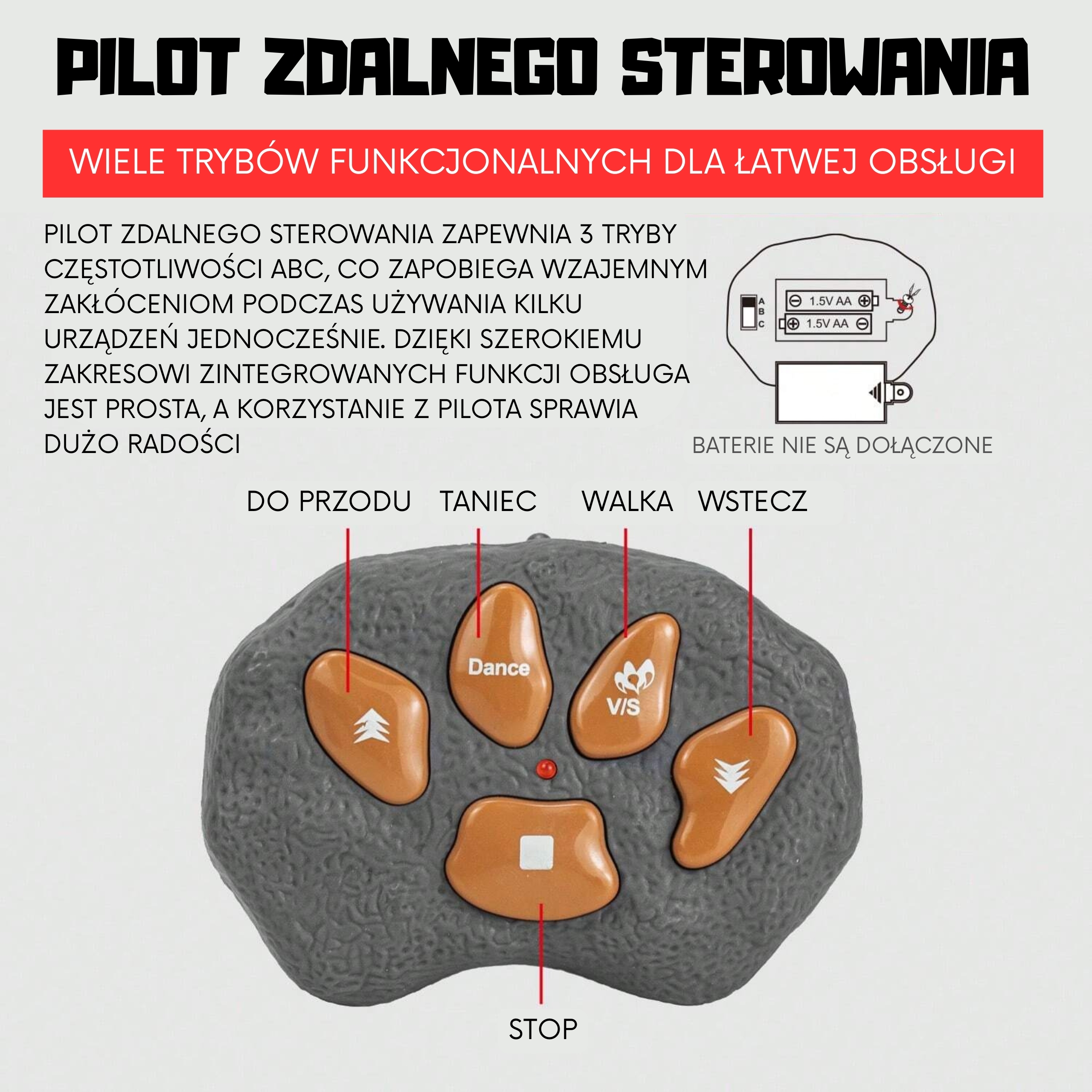 Reisige ajas tagasi dinosauruste ajastusse Woopie imelise kaugjuhitava Stegosaurusega! See realistlik mänguasi on ideaalne kingitus igale väikesele uurijale ja eelajalooliste olendite fännile. Täiustatud funktsioonide ja intuitiivsete juhtnuppudega pakub meie Stegosaurus tunde sõltuvust ja põnevat lõbu, võimaldades teie lapsel kontrollida tõelise dinosauruse liigutusi ja helisid. Ole valmis möirgama, tantsima ja unustamatuid seiklusi nautima! Omadused: – Lastele alates 3. eluaastast – Dinosaurus liigub edasi ja tagasi, imiteerides tõelise stegosauruse kõnnakut – Dinosauruse pea ja saba kõiguvad liikumisel – Dinosauruse seljal olevad silmad ja taldrikud süttivad – Teeb võimsaid möirgamisi, simuleerides tõelisi dinosauruste helisid – Dinosauruse jada, millel on eriline tants, esitamise režiim. lisab mängule interaktiivsust – Ergonoomiline kaugjuhtimispult võimaldab hõlpsalt juhtida kõiki funktsioone – 3 sagedusrežiimi (ABC) paljude dinosaurustega samaaegseks mängimiseks. – Tugev konstruktsioon tagab vastupidavuse ja pikki tunde. – Dinosauruse ja kaugjuhtimispuldi jaoks on vaja 5 x 1,5 V AA patareid (ei kuulu komplekti) Mänguasi arendab: – kujutlusvõimet – loovust – käelisi oskusi