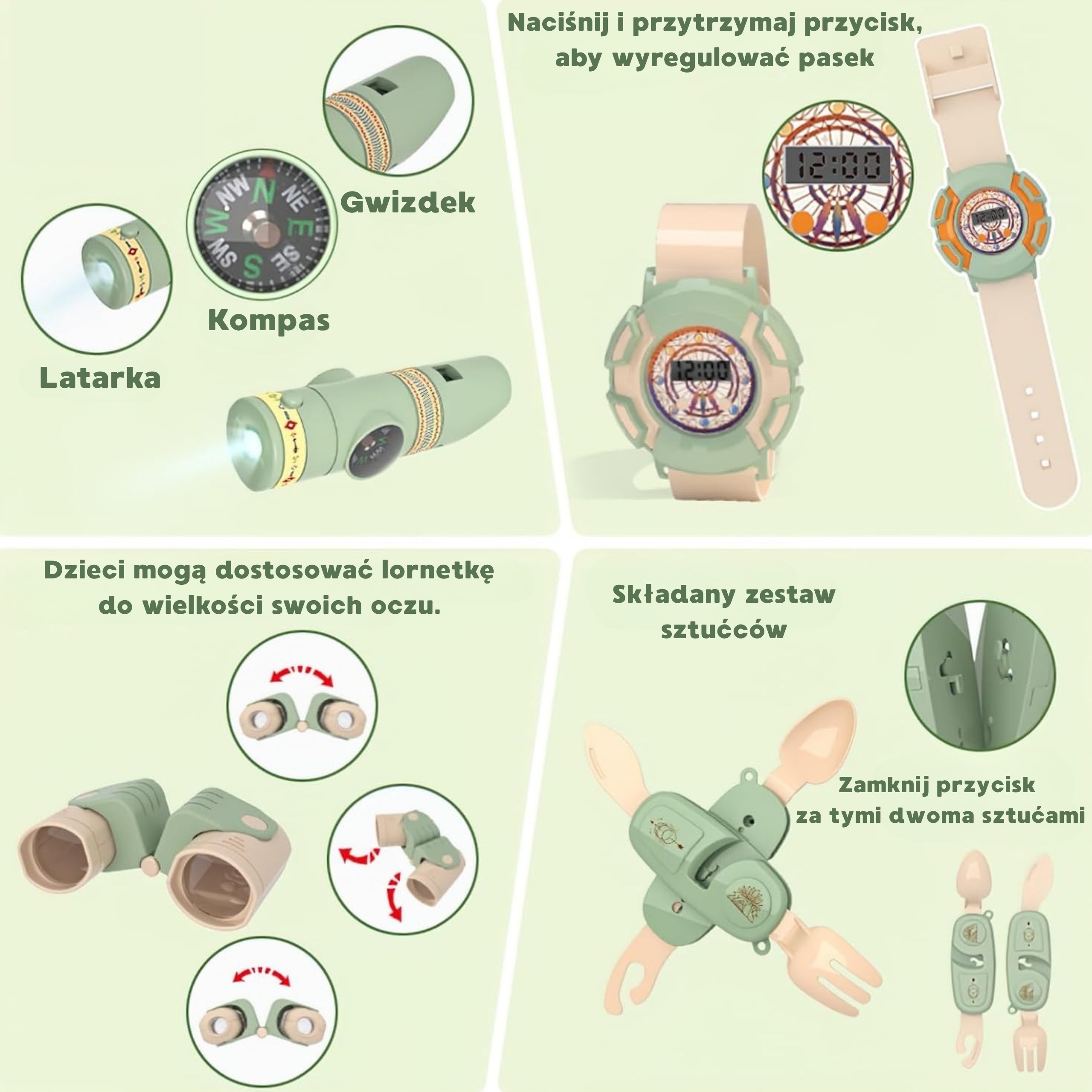 Woopie matkakomplekt on ideaalne pakkumine väikestele avastajatele, kes armastavad loomingulist lõbu ja seiklusi õues ja kodus. Tänu realistlikele tarvikutele, kergele konstruktsioonile ja lihtsale kokkupanemisele saab iga laps tunda end tõelise rändurina ja kogeda telkimise ajal unustamatuid hetki. Komplekt on mõeldud ainult mängimiseks ja ei sobi tegelikuks telkimiseks. Omadused: – Lastele alates 3. eluaastast – Valmistatud kvaliteetsetest materjalidest – Kerge konstruktsioon, mugav transpordikott – Valgusefektidega interaktiivsed mänguasjad lisavad mängule realistlikkust Komplekti kuulub: – Seljakott – Kokkupandav telk – Gaasipliit – Kompassi ja vilega taskulamp – Kell – Binoklid – Küpsetuspann – Konservipulber – Esmaabikomplekt – 2 taldrikut – 2 paprikat – 2 vorsti – 2 mängu – lühike ripats – pikk ripats – 4 rippuvat rõngast Mänguasi arendab: – motoorseid oskusi – loogikat – kujutlusvõimet – loovust – iseseisvust