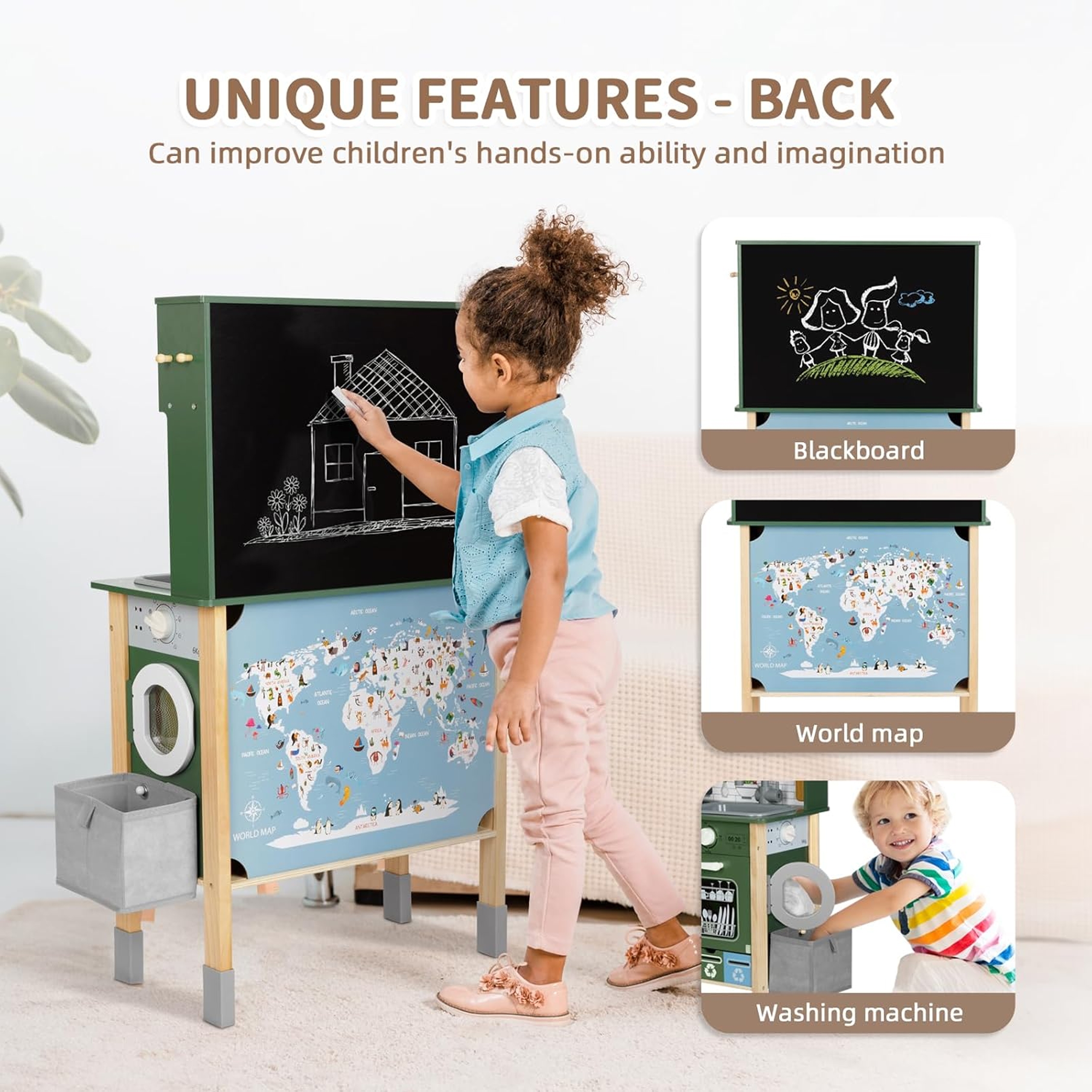 WOOPIE GREEN puidust interaktiivne köök 9in1 pesumasina ja lauaga
