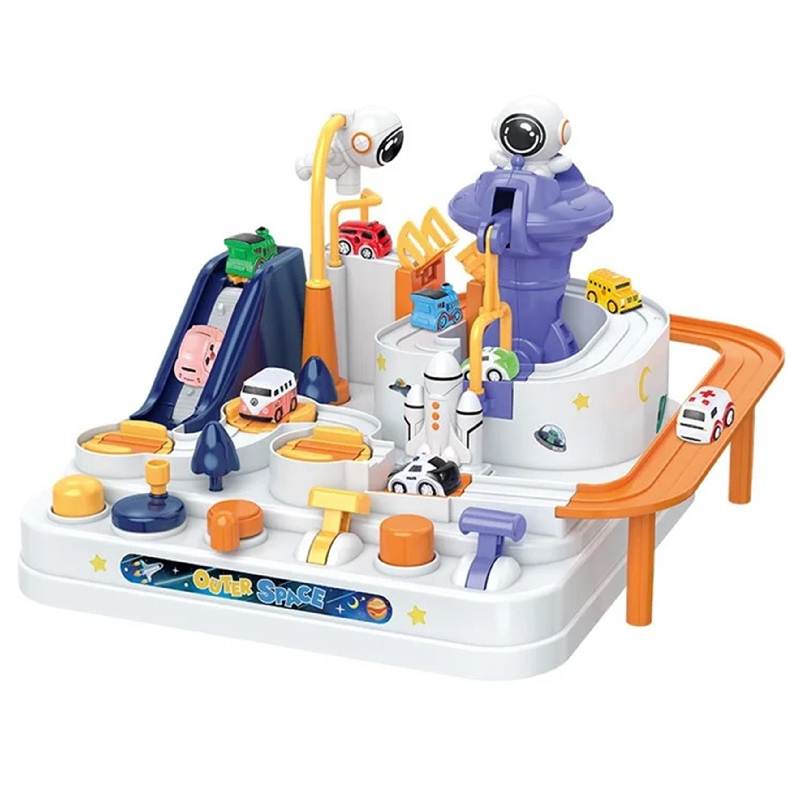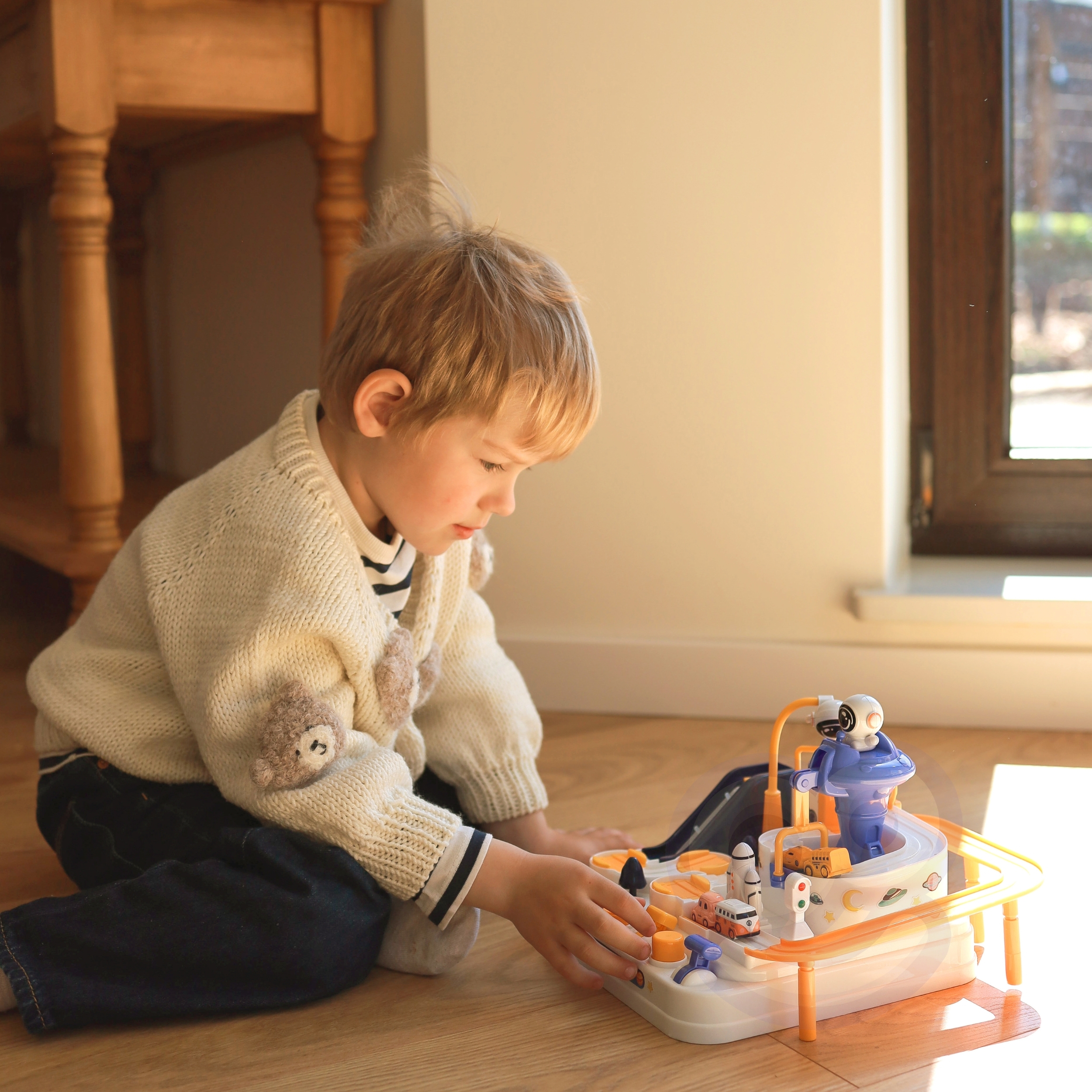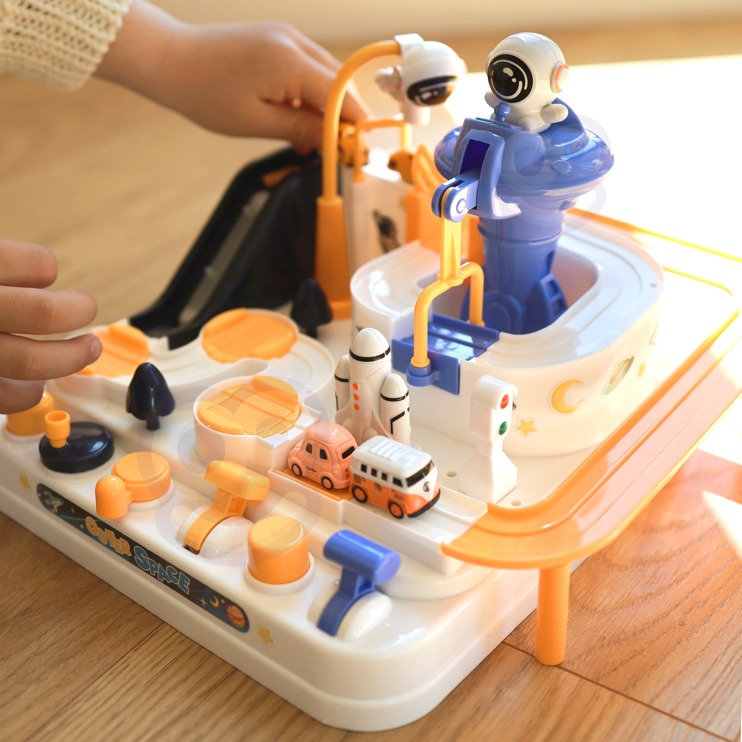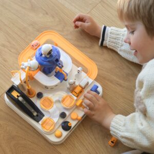 Interaktiivne takistusrada ”Astronaudi seiklus” on erakordne kingitus väikestele avastajatele, kes soovivad põnevaid seiklusi ja unustamatuid väljakutseid. See on midagi enamat kui lihtsalt mänguasi – see on tõeline areen, kus lapsed saavad mängida autojuhi rolli ja ületada erinevaid takistusi. Tänu läbimõeldud disainile ja erinevatele elementidele pakub mänguasi unustamatuid hetki täis põnevust ja väljakutseid. See on ideaalne tööriist kujutlusvõime ja käeliste oskuste arendamiseks, pakkudes samas ka palju nalja. Autorada ei paku mitte ainult sõiduvõimalust, vaid ka dünaamilisi, interaktiivseid elemente, mida juhitakse nuppude ja nuppudega. See on põnev mäng, mis nõuab keskendumist ja osavust. Komplektis on kolm autot, millega saab vabalt rada uudistada, olenevalt lapse fantaasiast. Sõidukid mitmekesistavad melu või võimaldavad lastel rajal võistelda. Üle raja sõitmine tundub lihtne, kuid arvukad elemendid, nagu käigud või tõstesillad, muudavad teekonna adrenaliini täis. Omadused: – Mänguasi vanuses 3 ja vanematele – Liikuvad elemendid – juhime neid vastavate nuppude ja vastavate nuppude abil – Autod liikusid ”õhus” tänu magnetile – Komplektis 3 autot – Lapsed peavad planeerima oma tegevust ja tegema otsuseid, kuidas ületada erinevaid marsruudil olevaid takistusi – Raja töötamiseks pole vaja patareisid – Raja töötamiseks pole vaja patareisid rajale paigutatavad autod, luues dünaamilise stardi Liikuvad platvormid – Määrab auto raja, suunates selle erinevatele marsruutidele Liikuv röövik – Transpordib auto jaama tippu Magnetrakett – Tõmbab auto ja transpordib selle tõstesillale Tõmbsild – Pärast raketi kandmist sõidab auto üle silla, mis võimaldab seda tõsta, tõstes platvormi. rada, et jätkata sõitmist finišisse
