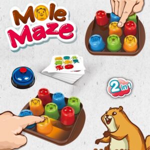 Mäng MOLE MAZE on äärmiselt sõltuvust tekitav õpetlik mäng. See pakub ainulaadset meelelahutuse ja hariduslike väärtuste kombinatsiooni. Mäng on mõeldud 1-2 mängijale. Mitme mänguviisiga MOLE MAZE on ideaalne mängimiseks ja õppimiseks liikvel olles. Mäng sisaldab värvilisi kaarte, mis julgustavad lapsi mängima. See on saadaval noorematele ja vanematele lastele. Mäng parandab probleemide lahendamise oskust, ruumitaju, arendab mõtlemist ja visuaalset koordinatsiooni. Mängul on kaasaskantav disain, mis muudab selle reiside ajal mugavaks. Mängu eesmärk on värvilisel kaardil muster võimalikult kiiresti korrastada. Igal mängijal on üks käik. Mängija, kes moodustab kaardile mustri kiiremini, helistab kella ja võidab mängu. Omadused: Mänguasi vanusele alates 4. eluaastast Ideaalne mängimiseks reisil Mänguasi arendab mõtlemist ja visuaalset koordinatsiooni Mäng arendab: keskendumist, meelt, visuaalset koordinatsiooni, taju