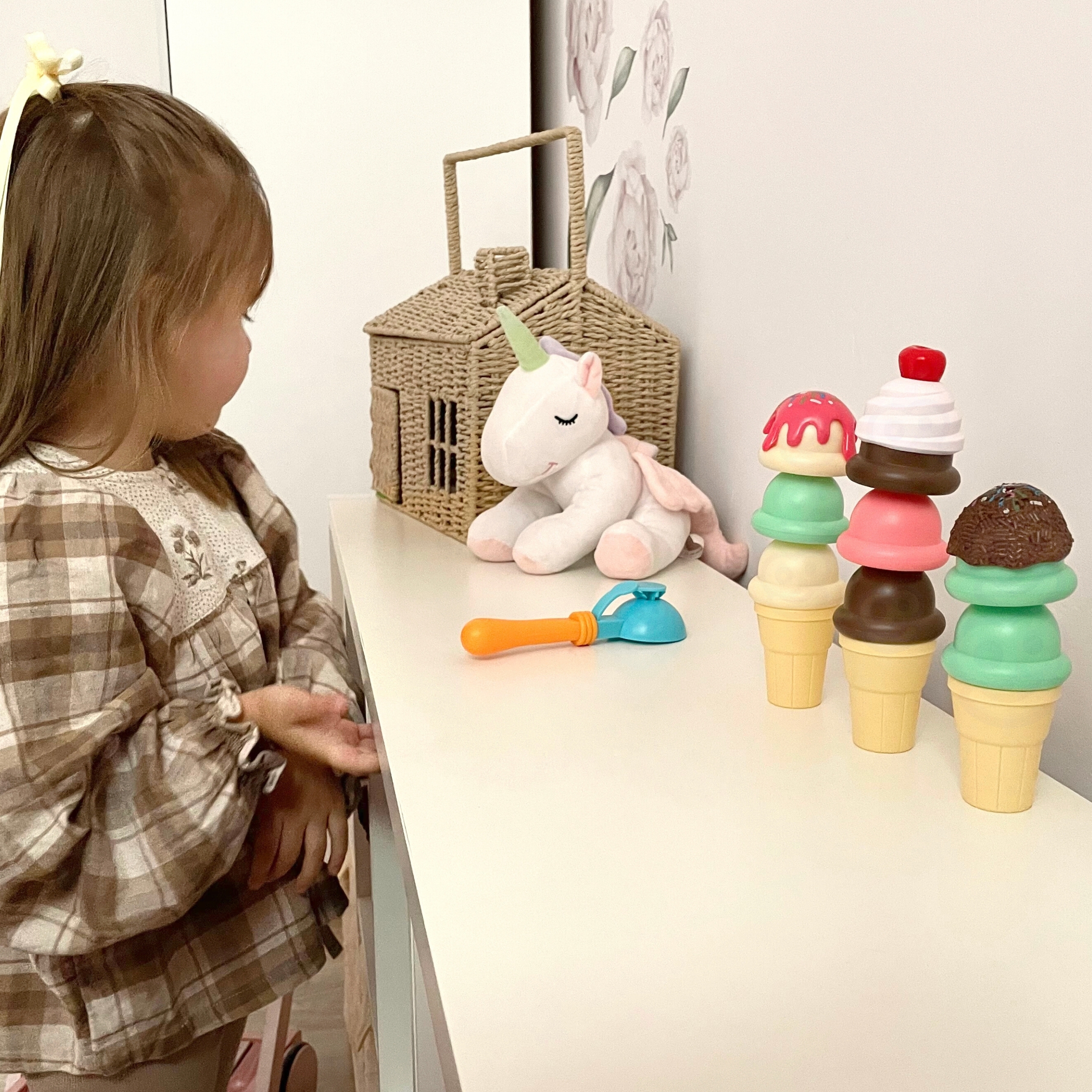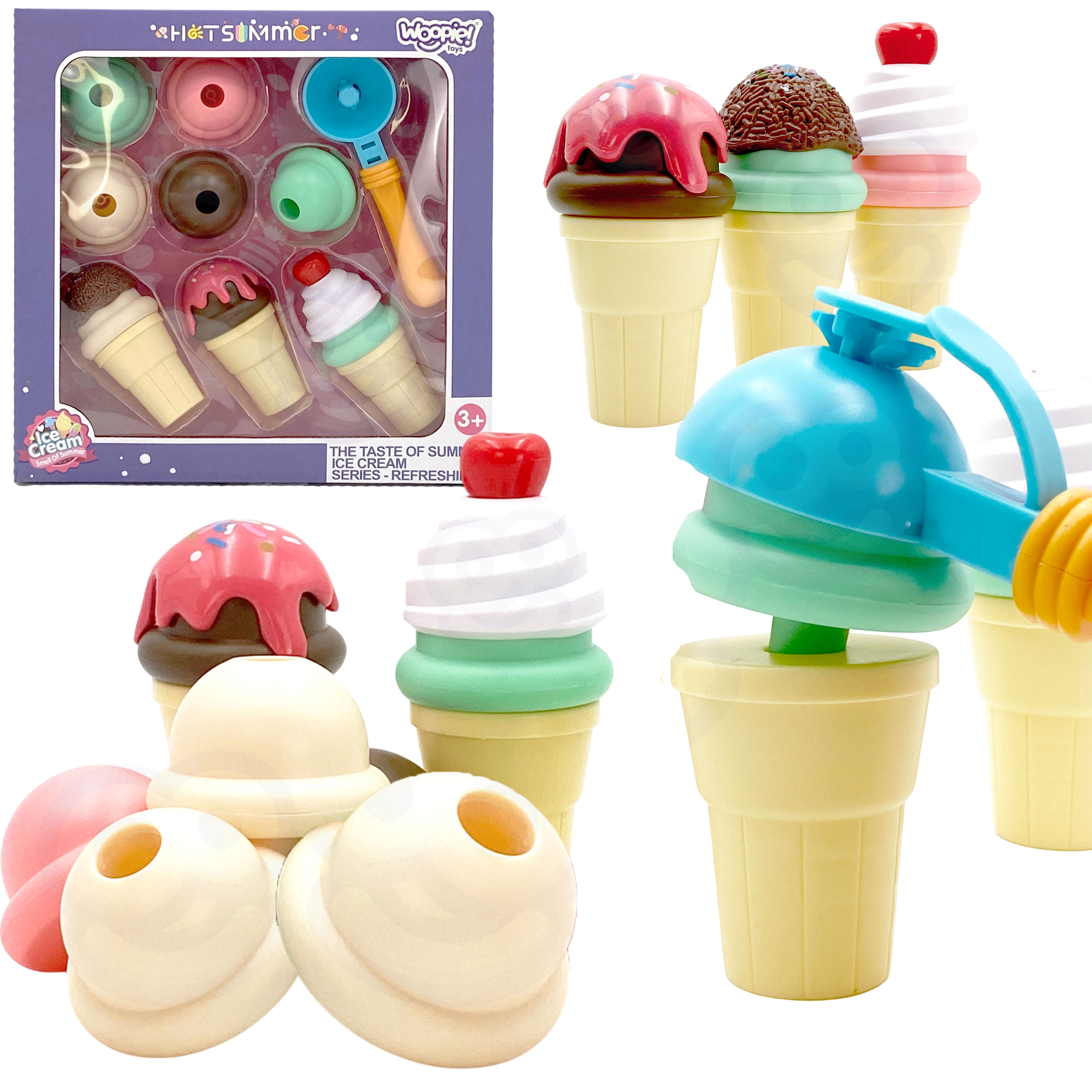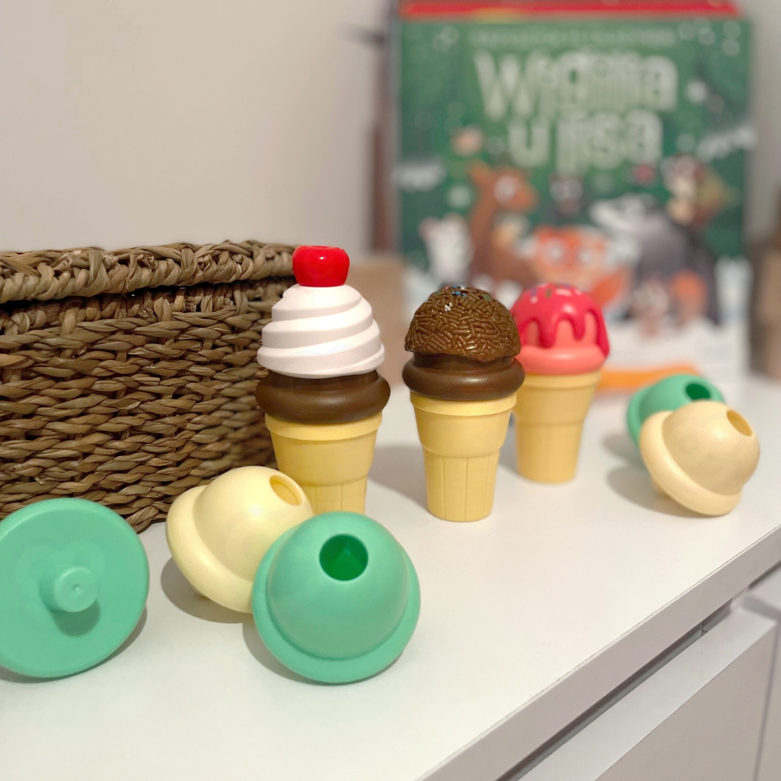 WOOPIE jäätise valmistamise komplekt paneb teie lapsele end tõelise kondiitrina tundma. Komplekti kuuluvad vahvlid, pallid, lusikas ja lisatarvikud. Laps võtab vahvli, paneb suvalise kulbi lusikale ja sätib seda nii, nagu tahab. Lihtne lõbu, mis arendab teie lapse kujutlusvõimet ja loovust. Laps saab võtta kondiitri ja kliendi rolle ning mängida koos sõprade või perega. Omadused: – mänguasi vanuses 3 ja vanemad, – komplekt sisaldab 15 elementi – lihtne kasutada – rollimäng Komplekti kuulub: – 3 jäätise vahvlit – 5 üksikut kulbikest – 3 jäätise magustoitu vahvlile panemiseks – 1 jäätise lusikas