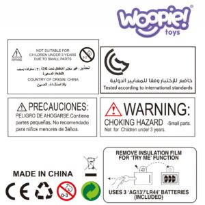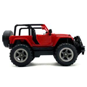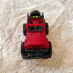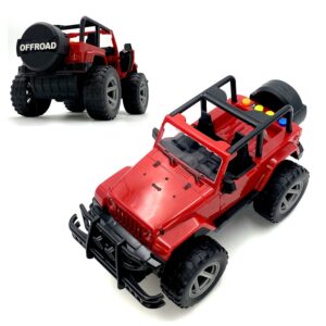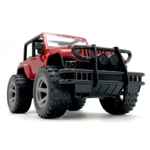 WOOPIE kaubamärgi punane maastikuauto Jeep pakub rõõmu igale väikesele juhile. Plastikust auto, mille ratastel on kummist turvis. Auto on varustatud heli- ja valgusefektidega, muutes melu veelgi realistlikumaks. Autol on hõõrdeajam, lükake see lihtsalt ette ja ta sõidab ise. Omadused: – mänguasi lastele alates 3. eluaastast, – 1:16 mõõtkavas mudel, – hõõrdeajam – lükake mänguasja lihtsalt ette ja see läheb, – helendavad esituled – vilguvad, kui vajutada ühte neljast nupust, – kui vajutada ühte neljast nupust, on kuulda sõidukile iseloomulikku heli, – ratas on plastikust, avanev uks turvis, – vajab 3 x AG13/LR44 patareid. Efektid: – sinine nupp – sõiduki käivitamise heli, – kollane nupp – mootori heli, – roheline nupp – helisignaal, – oranž nupp – tagurdussignaal.