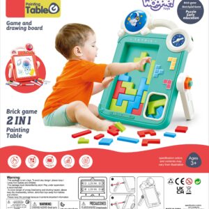 Kas otsite mänguasja, mis mitte ainult ei paku meelelahutust, vaid ka õpetab? See on ainulaadne 2-in-1 õppetahvel WOOPIE – laste loomingulise mängukeskuse poolt. Mänguasi ühendab endas värviliste markeritega joonistamiseks mõeldud tahvli ja Tetris-tüüpi klotside paigutamise tahvli funktsioonid. Joonistuslaual on 8 markerit, kustutuskumm ja 18 kahepoolset kustutatavat kaarti värvimiseks või kirjutamiseks. Tahvli teisel poolel on naljakas Tetrise pusle, mis pakub huvi igale lapsele ning arendab tema kujutlusvõimet ja loovat mõtlemist. Värvilisi plokke saab laduda vertikaalselt või tasaseks, et luua huvitavaid kujundeid ja pilte või eraldada 3D-hooneid. Meeleolu lisab 4 sisseehitatud muusikanuppu. Sarnane kell korpusel aitab teil õppida kellaaega näitama. Tunnused: – Tahvel lastele alates 3. eluaastast – 2 in 1 mänguasi, joonistuslaud ja Tetrise mäng – Stabiilne konstruktsioon jalgade ja käepidemega – Sisseehitatud nupud koos helidega (muusika, laulud, head harjumused, muinasjutud) – Sisseehitatud kellasint liikuvate osutitega – Vajalik on 2 AA patareid. Komplekti kuulub: – Kahepoolne tahvel (plokkide joonistamiseks ja paigutamiseks) – 8 värvilist kuivkustutusmarkerit – Svamm joonistuste kustutamiseks – Värviliste klotside komplekt (Tetris) – 18 kahepoolset kustutatavat kaarti – Kell tundide õppimiseks Mänguasi arendab: – peenmotoorikat – käe-silma koordinatsiooni – loogilist mõtlemist