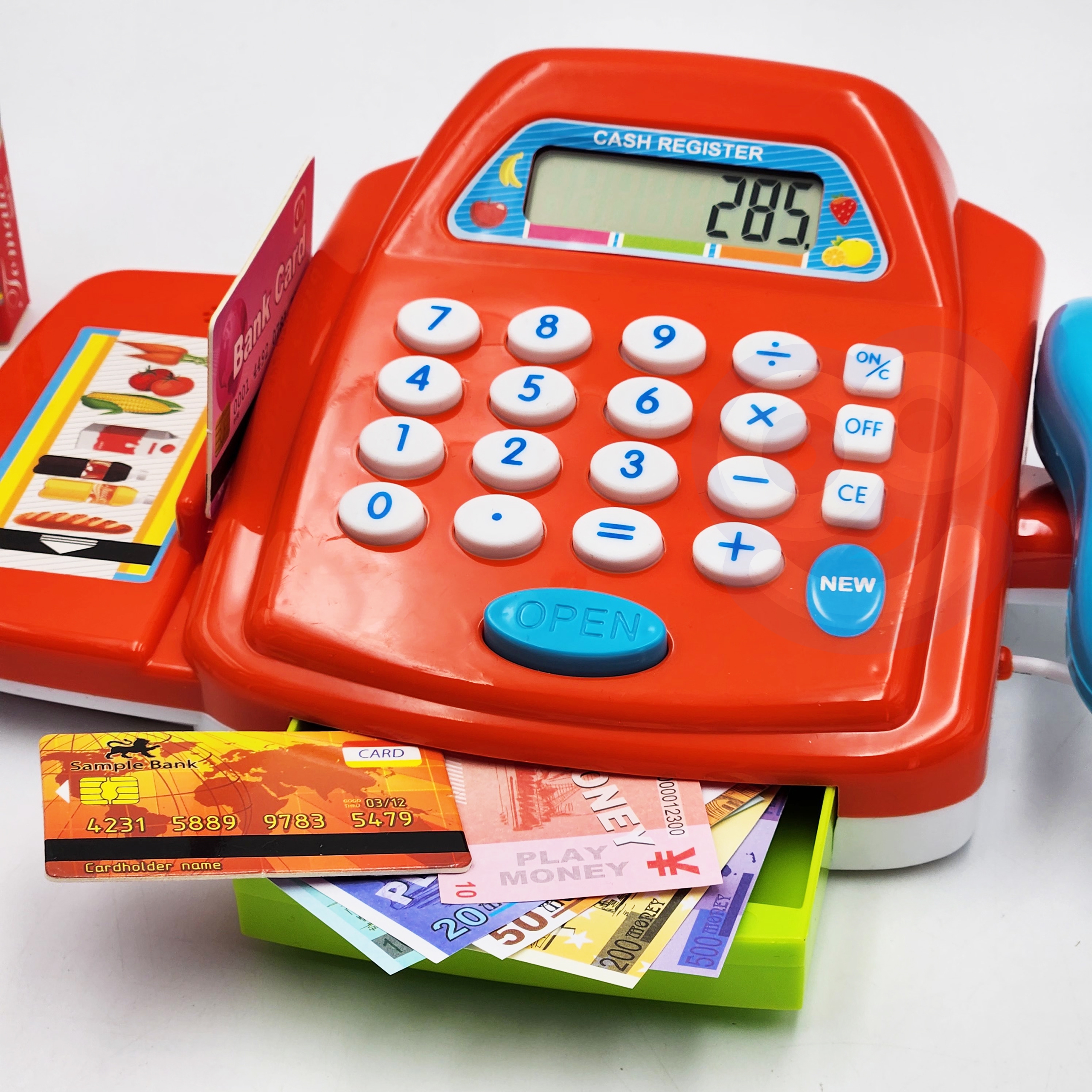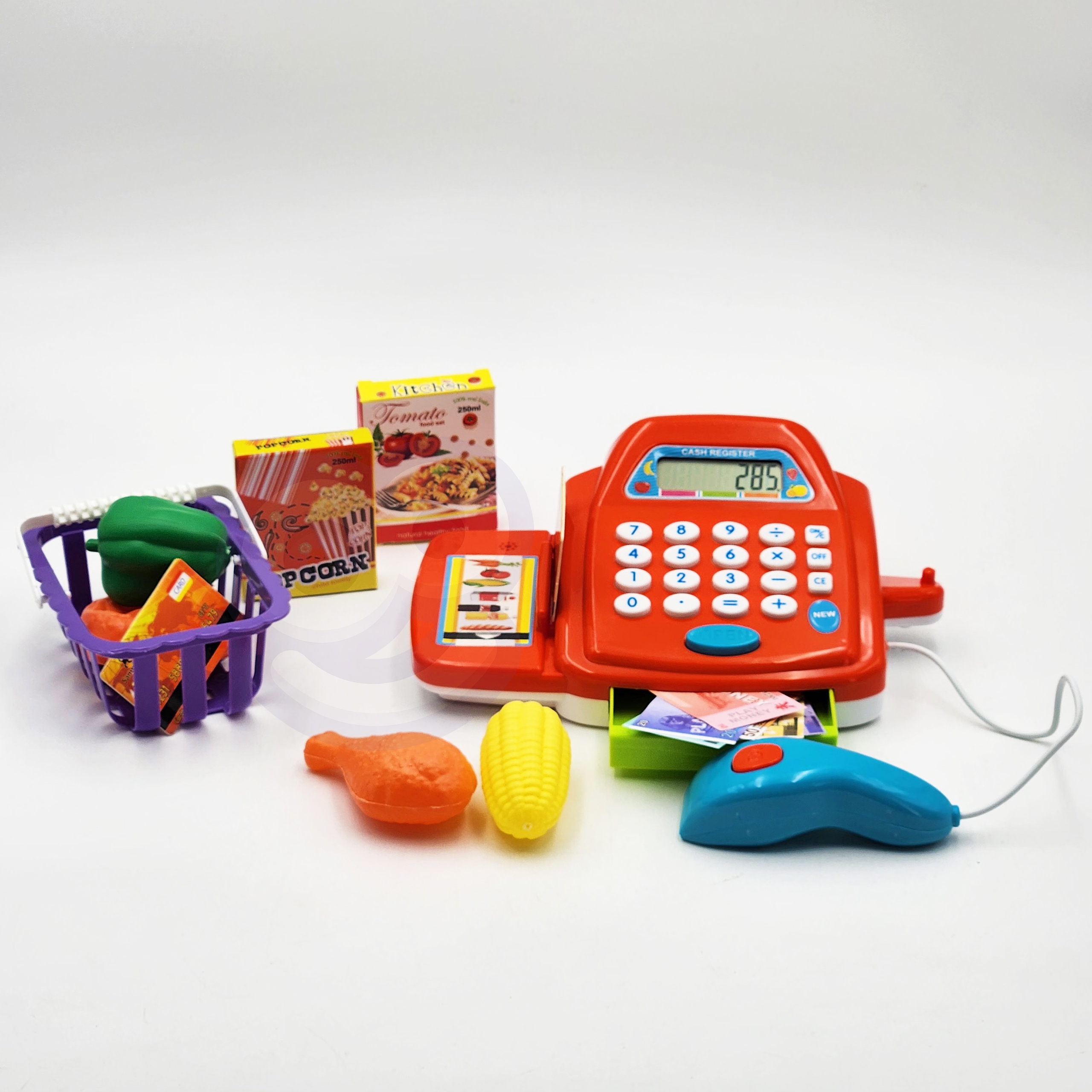 WOOPIE poe kassakomplekt koos tarvikutega on ideaalne pakkumine lastele, kes armastavad rollimänge. See interaktiivne hariv mänguasi ühendab õppimise meelelahutusega, tutvustades kõige pisematele ostlemise, loendamise ja kassaaparaadiga töötamise maailma. Tänu realistlikele funktsioonidele ja rikkalikule tarvikute komplektile saab laps tunda end nii müüja kui ka kliendina. Lapsed saavad valida ostetavad tooted, pakkida need korvi ja seejärel lugeja abil kassasse täita. Seejärel saab ostja maksta raha või maksekaardiga. Mänguasi sobib ideaalselt suuremas seltskonnas kasutamiseks ja rollideks jagatud. Omadused: – Interaktiivne poe kassa koos ekraaniga – Töötavad numbrinupud ja kalkulaatori funktsioon – Avatav kassakast – Liigutatav heli ja valgusega skanner – Tooge see lihtsalt toote lähedale – Maksekaardilugeja – Kaasas plastkaardid – Kassa realistlikud helid, skaneerimine ja sahtli avamine – Ostukorv toidukaupadega – Rahatähtede, müntide ja maksekaartidega avamise komplekt – Kassakomplekt sisaldab: poehoidjaga mängimiseks mõeldud kalendri plastist toiduained, nt. paprika, mais või kanakoib – mündid – krediitkaardid – rahatähed – ostukorv – skanneri häälte tegemine Mänguasi arendab: – suhtlemisoskust – matemaatika ja kalkulaatori kasutamise aluseid – peenmotoorikat – loovust ja kujutlusvõimet