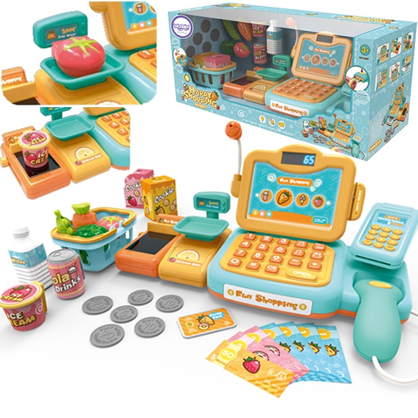 WOOPIE kassaaparaat lastele skanneri skaala mikrofon + 24 tarvikut
