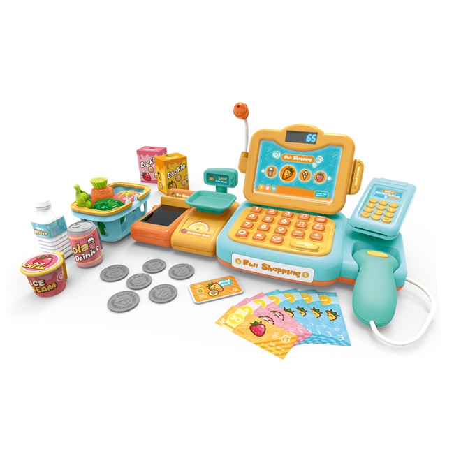Shop Checkout koos paljude Woopie tarvikutega on ideaalne idee üle 3-aastastele lastele. Mänguasi arendab laste kujutlusvõimet ja julgustab loovalt mõtlema. Lapsed saavad puu- ja juurvilju kaaluda ning seejärel klaviatuuri abil kassasse täita. Nad kasutavad lugejat küpsisepaki või veepudeli skannimiseks. Seejärel saavad nad maksta kahel viisil: traditsiooniliselt rahaga või maksekaardiga. Kõik see sisaldub komplektis ja pakub teie lapsele tundide kaupa lõbu. Omadused: – kaupluse kassa + 24 tarvikut, – mõeldud lastele alates 3. eluaastast, – kaal on varustatud kaalu, lugeja, mikrofoni, klaviatuuri ja makseterminaliga, – komplekti kuuluvad: ostukorvi, juurviljad, puuviljad, küpsisepakk, maksekaart, kunstlikud pangatähed ja mündid, telefon, veepudel, koola ja kassaaparaat teeb kvaliteetset häält, – pood – laste jaoks mõeldud seif, -, – kauplus kujutlusvõimet ja soodustab sotsiaalset arengut.