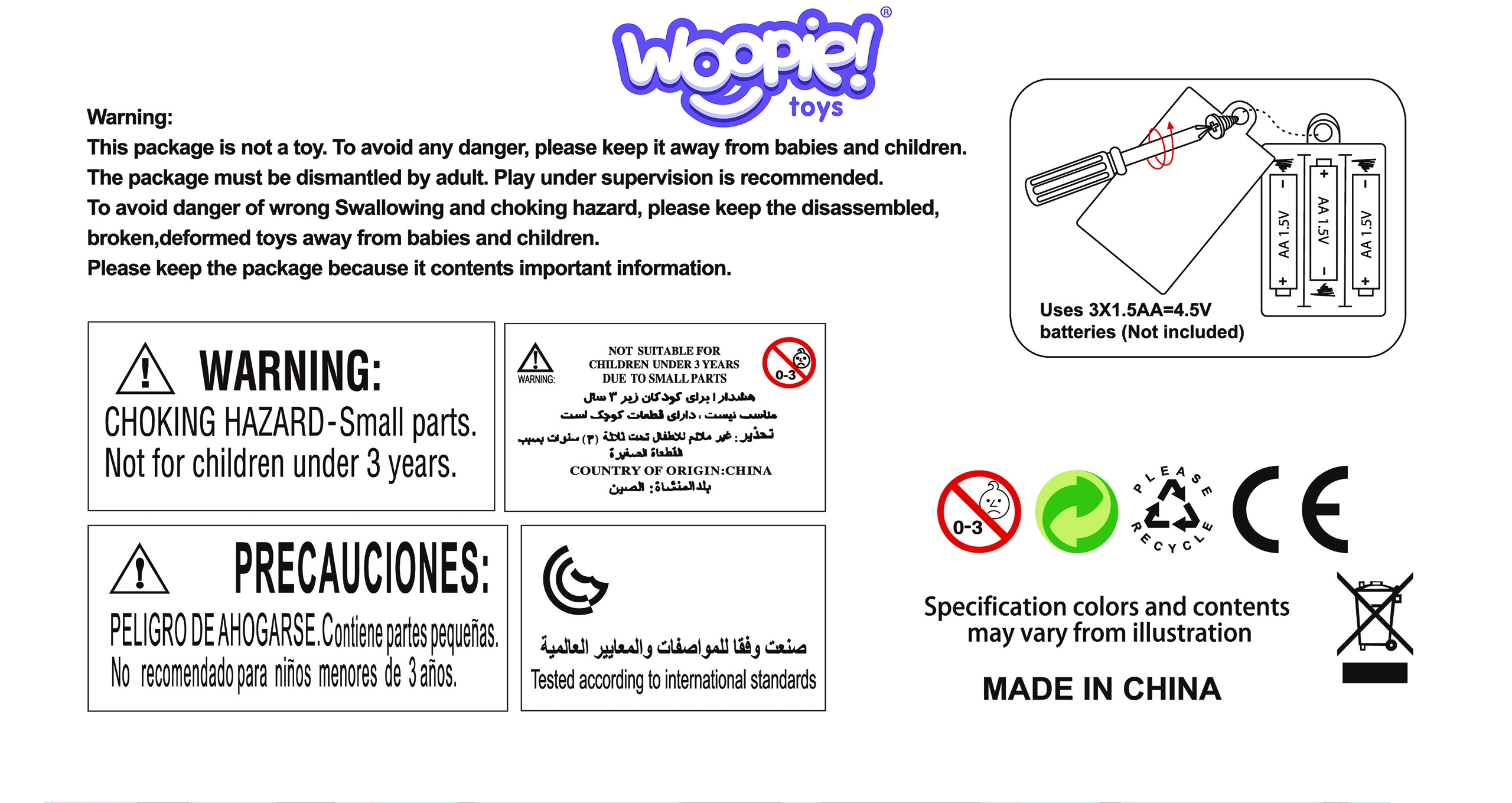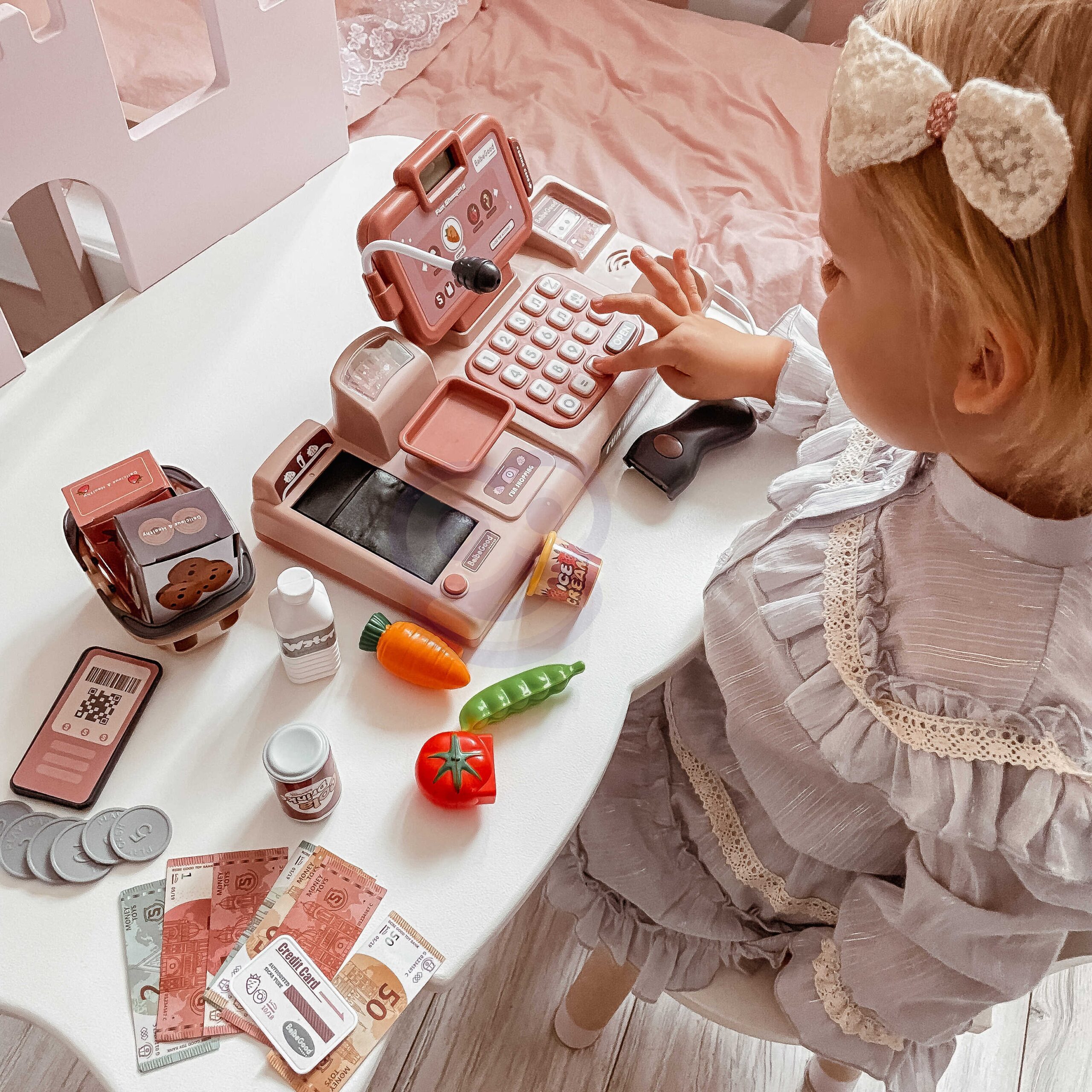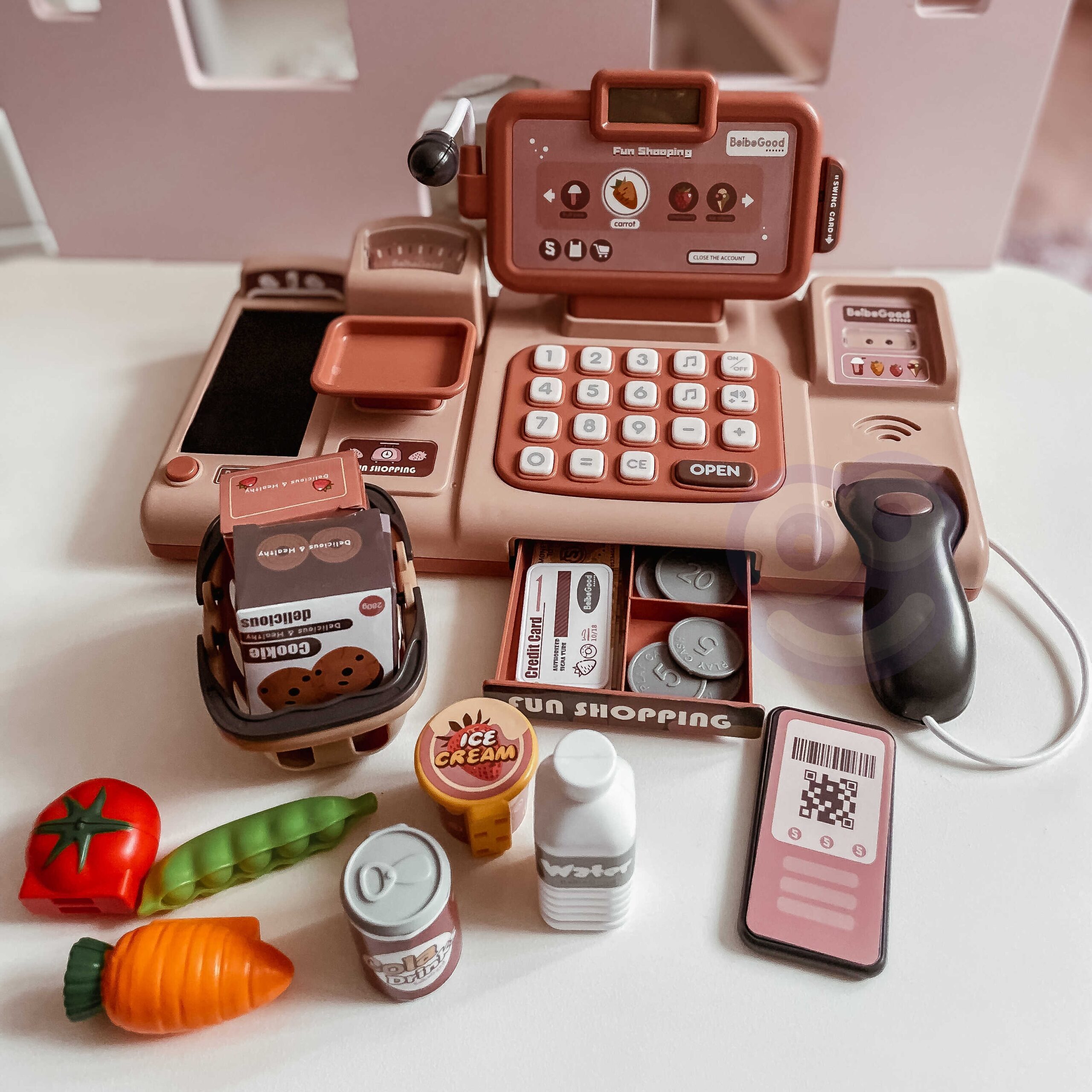 WOOPIE kassaaparaat on interaktiivne mänguasi, mis viib lapsed ostlemise ja kaubanduse maailma. See sisaldab koguni 25 lisatarvikut, sealhulgas skanner, kaal, mikrofon ja makseterminal, mis võimaldab realistlikku poes mängimist. Tänu heli- ja valgusfunktsioonidele saavad lapsed tunda end tõeliste kassapidajatena. Sobib suurepäraselt lastele alates 3. eluaastast, arendab sotsiaalseid ja kognitiivseid oskusi läbi rollimängude. See on suurepärane viis loendamise, toodete äratundmise ja raha haldamise õppimiseks. Omadused: – Mänguasi, mis on mõeldud lastele alates 3. eluaastast – Valmistatud kvaliteetsetest materjalidest, lastele ohutu – Koguni 25 tarvikut – Kassa töötab 3 AA patareiga (ei kuulu komplekti) – LCD ekraan Komplekti kuulub: – Ekraaniga kassaaparaat – Heli ja valgusega teisaldatav skanner – Elektrooniline kaal – Ostukaart ja terminal kunstlike pangakaartide väljakuulutamiseks – Krediitkaardi reklaam Mängutarbed: puuvili, juurviljad, joogid, jäätis, küpsised – Mobiiltelefon kassapidajale Mänguasi arendab: – matemaatilisi ja loendamisoskusi – käe-silma koordinatsiooni – kujutlusvõimet ja loovust – sotsiaalseid oskusi grupimängu kaudu – vastutustunnet ja organiseeritust Interaktiivsed funktsioonid: – Lülitage kassa sisse, kasutades nuppu ”sisse/välja” Sõber kuuleme seda toimingut skanneris kuulme fraasi ”Skanner” inglise keel. – Skänner suudab skaneerida ainult komplekti kuuluvaid tooteid ja see tekitab iseloomuliku skaneerimisheli (skanneri nupule vajutamine ilma tooteta aktiveerib heli/lause ”Hi Little Friend…” – Kassa töötab nagu kalkulaator – ütleb valjult inglise keeles konkreetse toimingu, nt 1+2=3 – Sellel on kaks noodiga nuppu, millest üks helin B lülitab sisse klassikalise laulu kaardi. ”terminali” lähedal, kaarti libistades aktiveeritakse ingliskeelne lause ”Hi Little Friend…” – Kui kassa on sisse lülitatud, saab kasutada mikrofoni, mis töötab nagu tavamikrofon – Kassa kõrval olev nupp aktiveerib selle, st liigutab seda – ”OPEN” nupp avab selle kohal olevat indikaatorit.