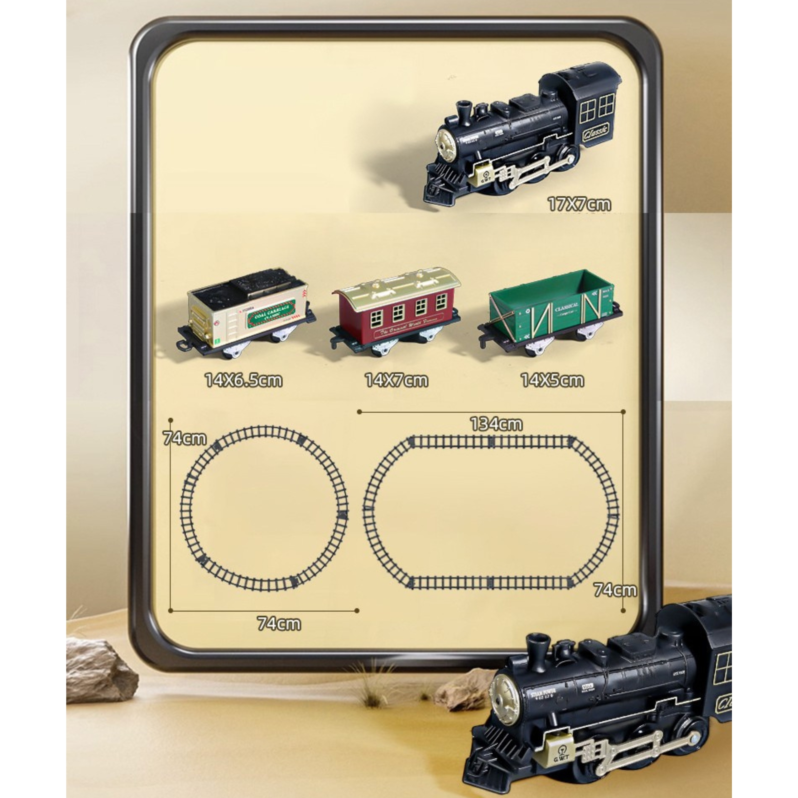 Viige end unustamatute reiside maailma klassikalise Woopie kaubamärgi aururongiga! See imeline komplekt pole mitte ainult aururongi truu koopia, vaid ka lugematute tundide loomingulise lõbu allikas. Klassikalise auruveduri tõetruu reprodutseerimine ning realistlikud valgus- ja heliefektid muudavad iga reisi unustamatuks seikluseks ning lihtsalt kokkupandavad rajad võimaldavad luua oma põnevaid marsruute. Ideaalne väikestele rongijuhtidele ja raudteehuvilistele, kes soovivad tunda rongireisi võlu! Omadused: – Lastele alates 3. eluaastast – Komplekt imiteerib klassikalist aururongi – Vedur on varustatud helendava esitulega, mis lisab sõidu ajal realistlikkust – Rong teeb realistlikke hääli, imiteerides tõelise auruveduri hääli, mis suurendab mängukogemust – Rööbastee elemente on lihtne ühendada, mis võimaldab kiiresti luua erinevaid marsruudi konfiguratsioone ja vagunite komplekti vagun, kastivagun), mis mitmekesistab lõbusust transpordil – Komplekt võimaldab ehitada ümmarguse rööbastee läbimõõduga 74 cm või ovaalse raja mõõtudega 134 x 74 (cm) – Vajalikud patareid: 2 x AA (ei kuulu komplekti) Komplekti kuulub: – 1 x Auruvedur valgus- ja heliefektidega – 1 x Söevagun x1 vagun -0 (4 sirget ja 6 ümarat) rajaelementi marsruudi ovaalseks või ümaraks ehitamiseks Mänguasi arendab: – loovust – kujutlusvõimet – käelisi oskusi – loogilist mõtlemist