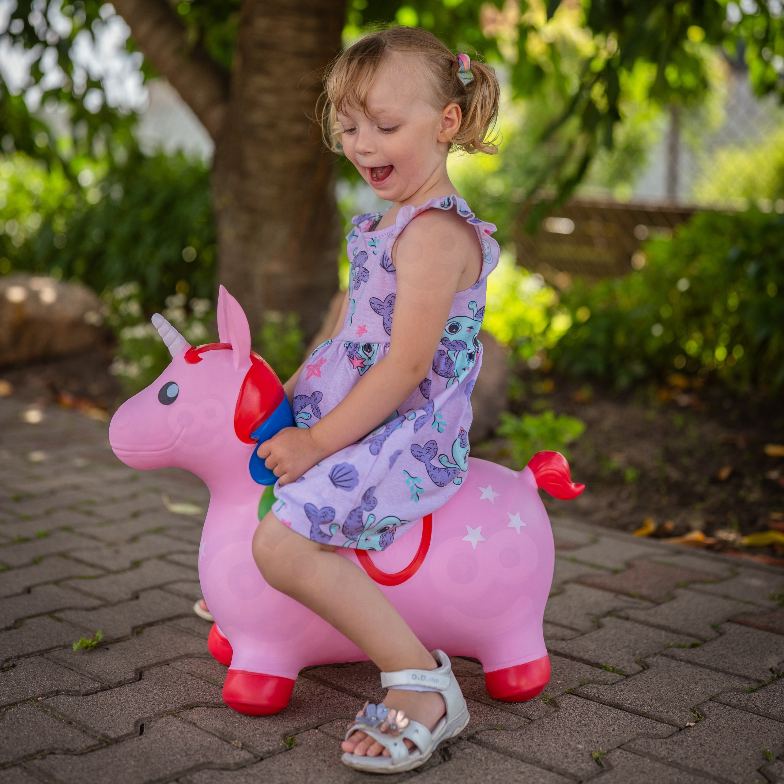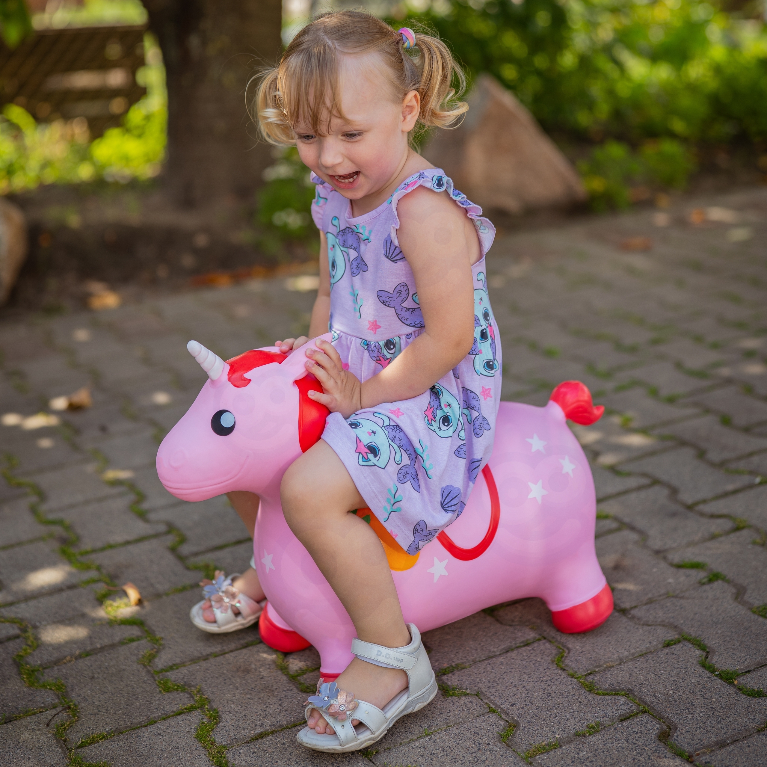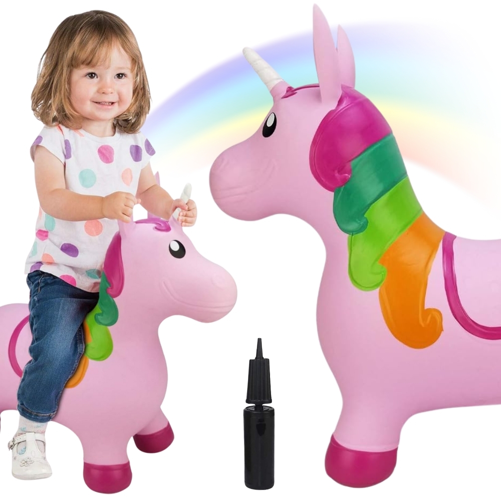 Alustage fantastilisele teekonnale Woopie imearmsa roosa hüppava ükssarvikuga! See imearmas täispuhutav mänguasi on ideaalne viis julgustada oma väikelast aktiivselt mängima, arendades samal ajal oma koordinatsiooni ja tasakaalu. Ohututest, vastupidavatest materjalidest ja väikeste kätega disainitud ükssarvikust saab teie lapse parim sõber, pakkudes tundide kaupa muretut hüppamist kodus ja õues. See on ideaalne kingitus, mis äratab teie kujutlusvõimet ja pakub palju rõõmu! Omadused: – Lastele vanuses 12 m+ – Maksimaalne koormus kuni 45 kg – Rõhk, millega džemprid tuleb pumbata, on 0,3-0,4 baari – Ükssarvik kauni roosa varjundiga värvilise laka ja valge sarvega, kaunistatud tähtedega – Valmistatud vastupidavast ja lapsele ohutust materjalist – Laiad, tagavad kukkumisohu minimeerimise. Ükssarviku kõrvad toimivad ergonoomiliste käepidemetena, mis sobivad ideaalselt väikestele kätele – Kiire ja lihtne täispuhumine tänu lisatud pumbale Komplekti kuulub: – 1x Täispuhutav Unicorn hüppamiseks – 1x Pump täispuhumiseks Mänguasi arendab: – Suure motoorseid oskusi – Tasakaalu – Ruumiline orientatsioon – Enesekindlus – Loomingulisus ja kujutlusvõime cm – Laius 8 cm – Füüsis 60 cm – Kõrgus koos sarvedega 49 cm – Kõrgus (kõrvad/sarved) 41 cm – Istme kõrgus 26 cm – Istme laius 23 cm
