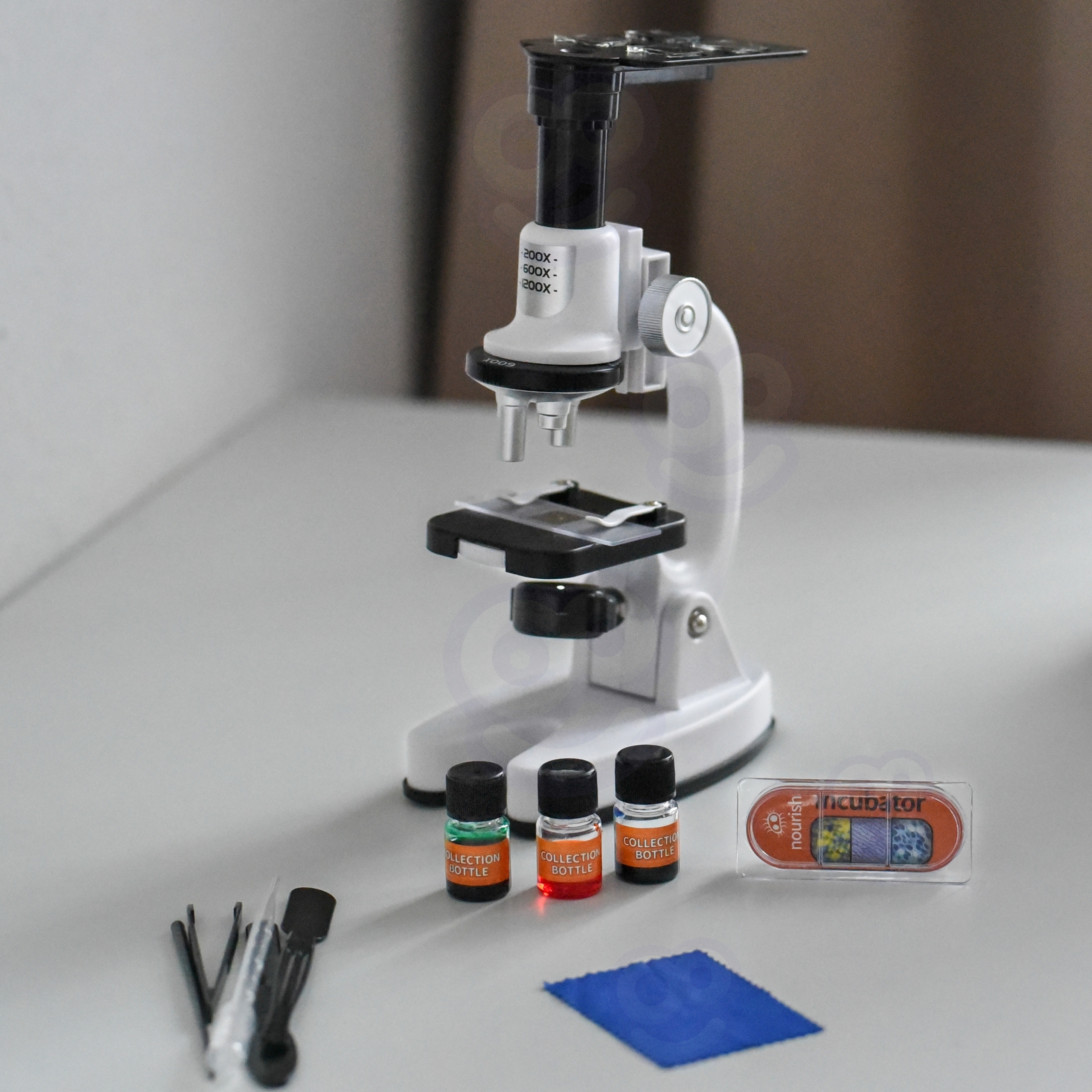 Avage oma lapsele uks nähtamatusse maailma Woopie ulatusliku mikroskoobikomplektiga! See on teie käeulatuses terviklik labor, mis on loodud väikestele uurijatele alates 6. eluaastast. Muljetavaldava 1200-kordse suurendusega mikroskoop, mis on kombineeritud rikkaliku professionaalsete tarvikute komplekti ja võimalusega ühendada nutitelefon, tagab lugematu arv tunde harivat lõbu. Laske oma lapsel arendada uudishimu, täpsust ja õppimiskirge, avastades ümbritseva maailma põnevaid detaile – taimerakkudest kiustruktuurideni. See komplekt on ideaalne kingitus, mis inspireerib sind mõtlema, uurima ja oma hämmastavaid avastusi jagama! Omadused: – Mõeldud lastele alates 6. eluaastast – Kolm suurendusastet: 200x, 600x, 1200x – Sisseehitatud 4-värviline filter – Nutitelefoni adapter – Kvaliteetsed HD optilised läätsed – Stabiilne ja vastupidav plastikkonstruktsioon – Intuitiivne ja lihtne käsitsemine Komplekti kuulub: – Reguleeritava kõrgusega mikroskoop, (600x) +200x, (600x) ja pöörlev värvifilter – Nutitelefoni hoidik vaatluste dokumenteerimiseks – 12 klaasslaidi (sealhulgas 2 valmis näidistega) – 8 täiendavat väikest slaidi – Kast slaidide hoidmiseks – Ettevalmistusvahendid: pintsetid, nõel, 2 spaatlit, pipett – 3 proovipudelit – 4 katteklaasi – luup koos konteineri lisakorgiga – eelvaatluste jaoks – Cloth2 optika Kandiku/slaidihoidja Mänguasi Arendab: – Uurimis- ja teadusoskusi – Uudishimu ja valmisolekut maailma uurida – Täpsust, kannatlikkust ja käe-silma koordinatsiooni – Kriitiline mõtlemine ja vaatluste analüüs – Loovus ja iseseisvus katsetes – Arendab kirge loodusteaduste vastu