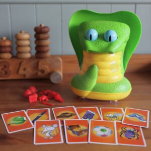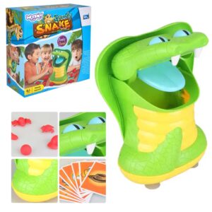 Greedy Snake Arcade Game kaubamärgilt WOOPIE on mäng, mis sobib ideaalselt sünnipäevaks, pereõhtuks ja muudeks sündmusteks. Mäng nõuab keskendumist ning kompimismeele ja kujundite tunnetamist. Meie lõbus arkaadne peremäng GREDY SNAKE on lastele alates 3. eluaastast. Omadused: – mäng lastele alates 3. eluaastast – mitmikmäng 1 kuni 5 mängijale – ei vaja patareisid – treenib laste väledust ja osavust – meeldivad värvid Mängureeglid: Ava ussi suu ja aseta esemed, mida joonistad, tema kõhtu. Iga mängija tõmbab kordamööda kaardi esemega MÄNGE! madu võib igal ajal oma suu sulgeda ja sind hammustada, ta on väga näljane, seega ei pea ta lahtise suuga kaua vastu. Võidab see, kes võtab välja loositud esemed välja ilma, et teda hammustaks. Madu on mängu ajal väga näljane ja vihane, kui mängija otsib oma suust mõnda eset pikka aega, siis paneb ta selle kinni ja mängija kaotab. Komplekti kuulub: – madu – 10 pildikaarti – 10 loositavat eset