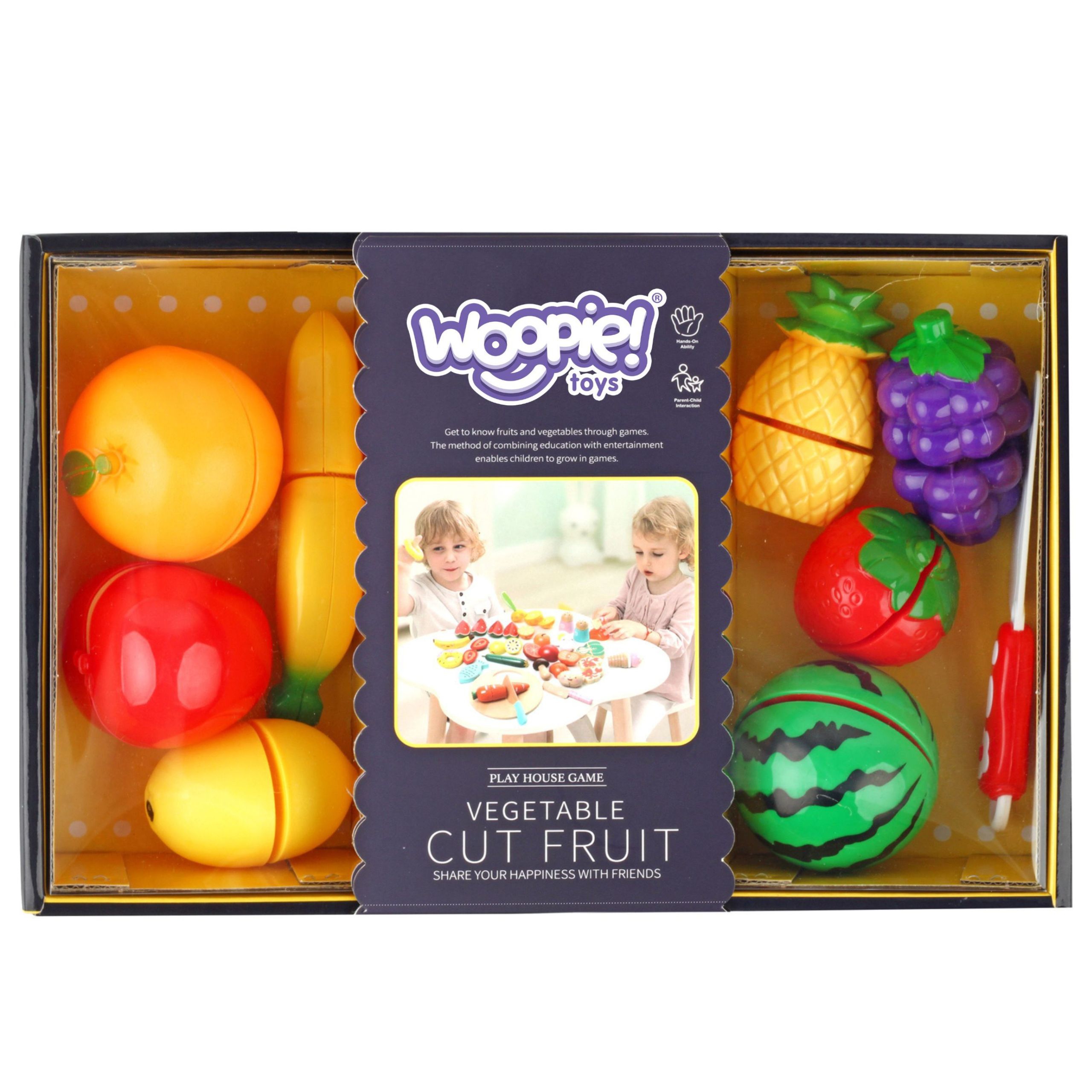 Laudale lõikamiseks mõeldud puuvili sobib suurepäraselt lasteaeda ja koju. Komplektis on 8 pooleks lõigatud vilja, mida saab ühendada takjapaela abil ning mänguasja NOT SHARP nuga ja lõikelaud. Laps suudab jäljendada igapäevaseid tegevusi. Seda tüüpi mänguasjad arendavad peenmotoorikat, mis on üldise osavuse aluseks. Peenmotoorika viitab sõrmede ja käte liigutustele. Need on liigutused, mis hõlmavad väikest kehaosa, kuid nõuavad keskendumist ja keskendumist sooritatavale tegevusele. See on ideaalne mänguasi, mis süvendab vanema ja lapse sidet ühise toiduvalmistamise ajal. Mänguasja saab kasutada ka puslena. Komplekt võimaldab arendada erinevaid oskusi, mis tulevad kasuks hilisemas elus. Mänguasi on multifunktsionaalne, nii et laps saab mängida mitmel viisil. Meie laps võttis oma köögis koka rolli. Kõik oleneb lapse loovusest. Omadused: Mänguasi vanuses 3 aastat ja vanemad – ohutu ja loominguline puuviljalõikuskomplekt väiksematele lastele. – Ühest küljest on see klassikaline ”lõikav” mänguasi, kuid teisest küljest saab seda alguses puslena kasutada. – Lapsed, kellele meeldib köögis toimuvat eriti jälgida, saavad proovida kätt puuviljadega tahvlil, mille osad on takjapaelaga ühendatud. – Tänu Velcro kasutamisele tekib takistus, nagu päris lõikamise ajal. – Pärast lõikamist voldi vili lihtsalt kokku ja võid lõbu otsast alustada. – Ideaalne toode rühmamänguks. Mänguasi arendab: – käe-silma koordinatsiooni – osavust – oskust töötada rühmas – kujutlusvõimet – uudishimu Komplektis on 10 elementi: – nuga – puuvili – lõikelaud