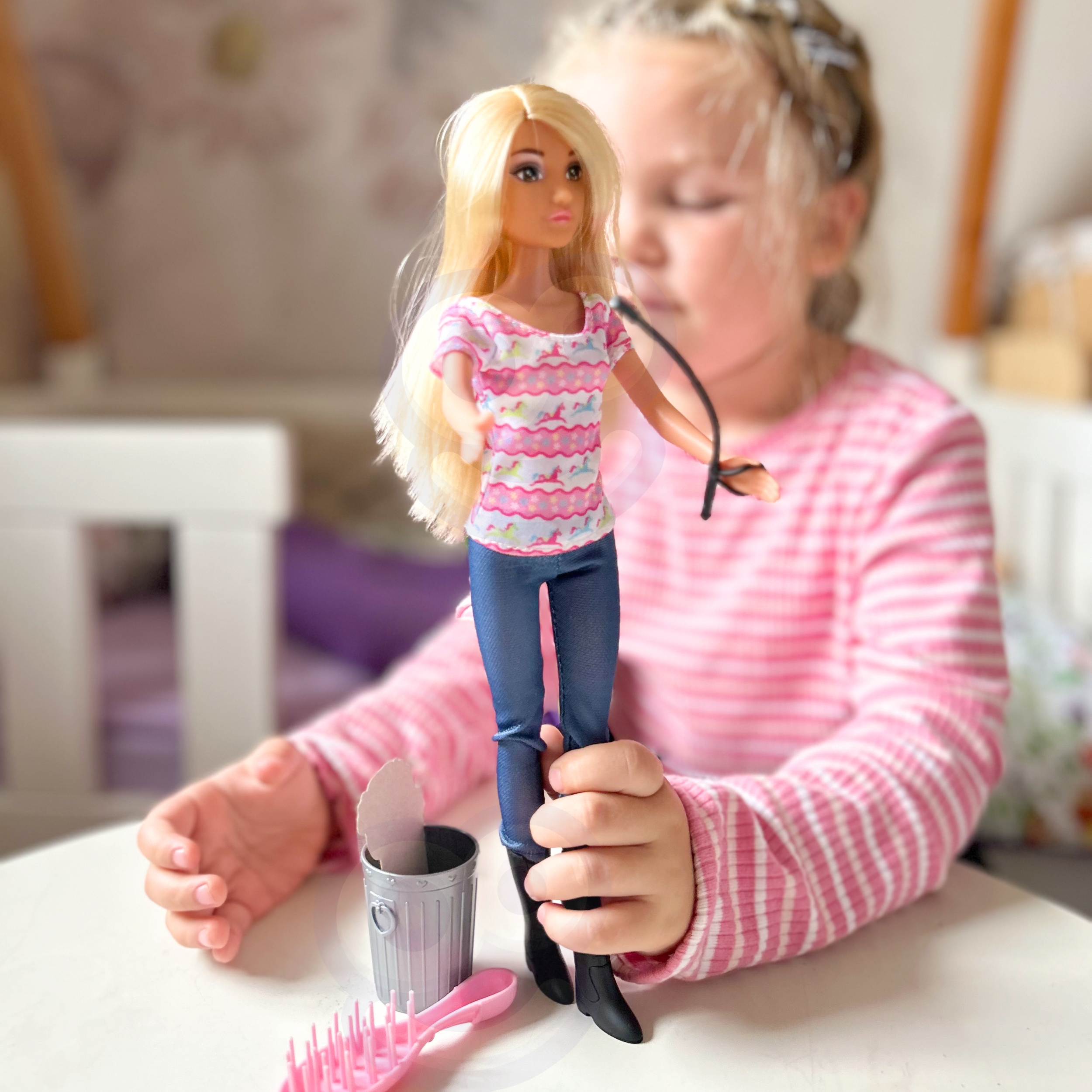 Sukelduge ratsutamise maagilisse maailma tänu Woopie Royali kaubamärgi erakordsele komplektile! See imeline mänguasi on loodud lastele, kes unistavad hobuste eest hoolitsemisest ja armastavad nukkudega mängida. Komplektis ei ole mitte ainult ilus nukk, vaid ka võluv hobune – mõlemal on pikad paksud juuksed, mis sobivad ideaalselt kammimiseks ja kujundamiseks. Tänu sellele on lastel piiramatud võimalused omanäoliste soengute loomisel, arendades samas nende loovust ja käelisi oskusi. See komplekt ei paku mitte ainult tunde täis fantaasiat ja nalja, vaid ka väärtuslikke õppetunde hoolivuse ja vastutuse vallas. Nukk on riietatud stiilsesse riietusse, mis lisab talle võlu ning kaasas olevad aksessuaarid – nagu kiiver, pintsel või porgandiga anum – muudavad mängu veelgi realistlikumaks ja interaktiivsemaks. See on tõeline maiuspala väikestele hobuse- ja nukusõpradele, kes soovivad olla hoolitseva eestkostja ja ratsaniku rollis. Omadused: Mänguasi vanuses 3 ja vanemad. Nuku juuksed ja hobuse lakk sobivad suurepäraselt kammimiseks. Tänu neile saate luua erinevaid soenguid ja tutvustada uusi stiile. Komplektis on nuku kiiver, pintsel ja anum porganditega. Stiilne riietus nukule ja realistlikud ratsutamistarvikud. Mänguasi on valmistatud kvaliteetsetest materjalidest, tagades ohutuse mängimisel. See pole lihtsalt komplekt, see on terve seiklus, mis ootab, et teie laps avastaks. Laske oma ratsutamisunistustel Woopie Royaliga reaalsuseks saada!