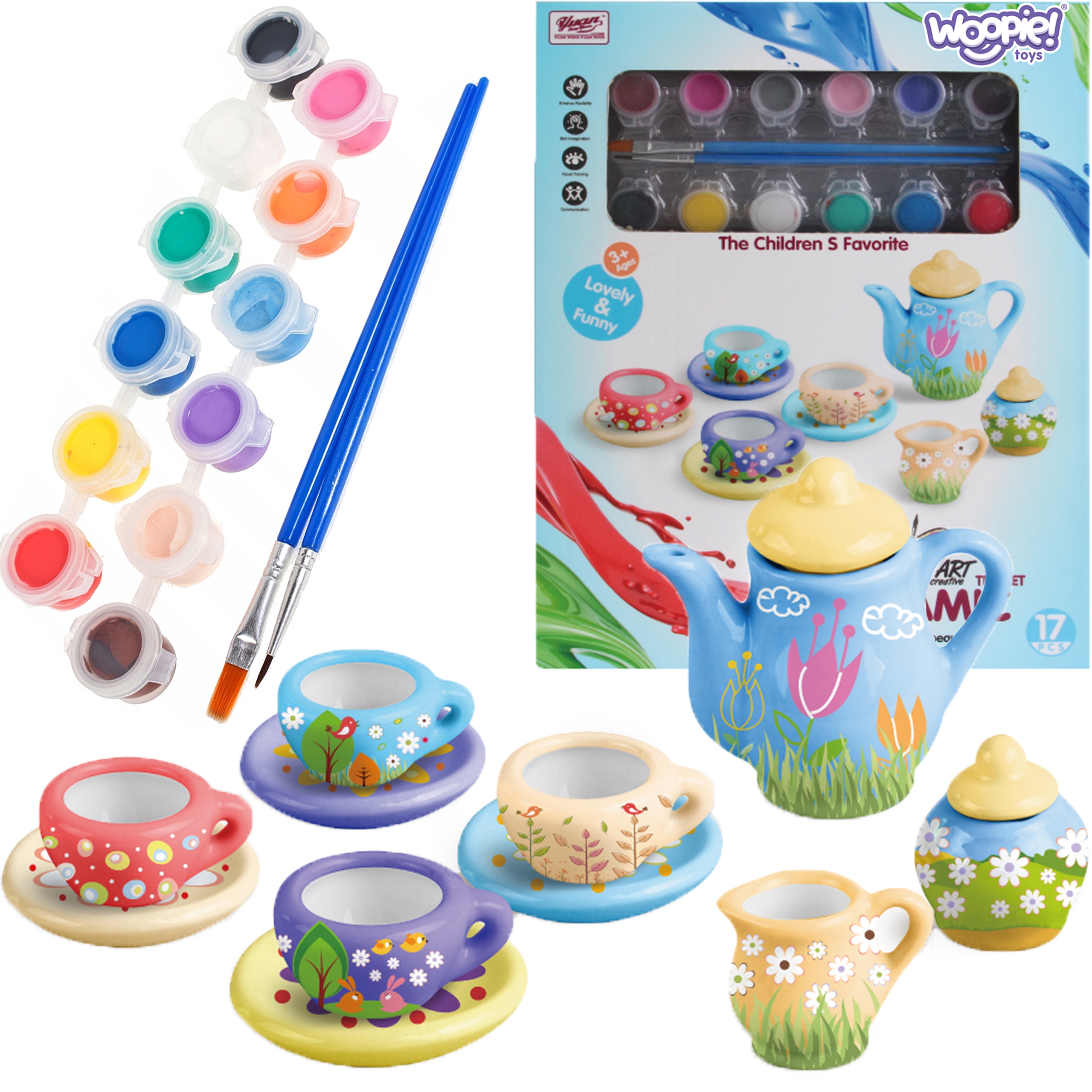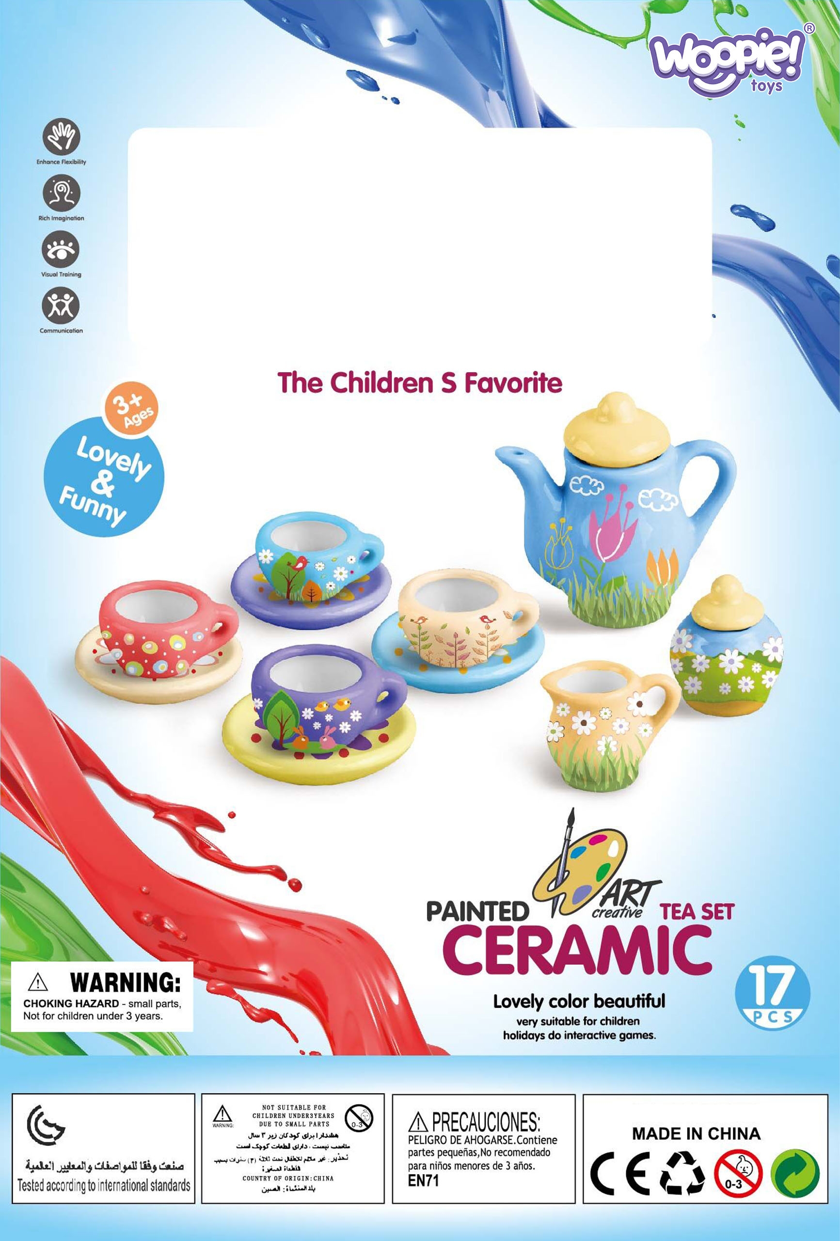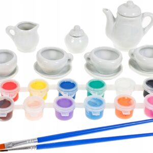Kas soovite arendada oma lapse loovust ja pakkuda talle unustamatut lõbu? Las temast saab WOOPIE keraamilise maalimise teekomplektiga tõeline kunstnik. Laps saab ise kaunistada kogu komplekti, mis võib olla kaunistuseks riiulil või sobib originaalseks käsitsi valmistatud kingituseks. Toote omadused: – komplekt vanuses 3 ja vanemad – võimalus luua oma mustreid, – keraamika, – kvaliteetne kattevärv – peale kaunistamist saab kasutada nukkudega mängimiseks. Komplekti kuulub: – 7 tk. teekomplekt – 12 värvi – 2 pintslit