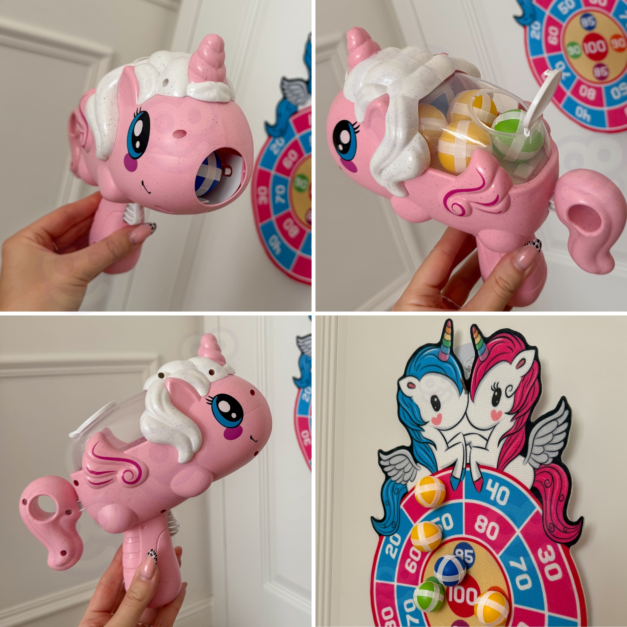 Sisenege võistluse ja osavuse maagilisse maailma Woopie kaubamärgi arkaadmänguga! See imearmas komplekt võimaldab teie lapsel arendada oma eesmärki ja koordinatsiooni turvalisel ja põneval viisil. Armsa ükssarviku kujuline kanderakett tulistab spetsiaalseid palle, mis tänu Velcrole võluväel sihtmärgi külge kleepuvad. Ideaalne sise- ja välistingimustes mängimiseks, pakkudes tunde kaasahaaravat meelelahutust ja aidates teil parandada oma täpsust! Omadused: – Lastele alates 3. eluaastast – Muinasjutulise ükssarviku kujulised kanderaketid on visuaalselt erakordselt atraktiivsed – Kanderakett on valmistatud ökoloogilisest ja ohutust materjalist – Kuulid kleepuvad takjapaelaga sihtmärgi külge, mis hõlbustab tabamist ja punktide lugemist – Selgete punktidega suur märklaud soodustab konkurentsi ja parandab täpsust. skoorimine – Velcro pallid (6 tk) – Isekleepuv konks kilbi riputamiseks. Mänguasi arendab: – Silma-käe koordinatsiooni – Liigutuste täpsust ja täpsust – Keskendumist ja keskendumist – Motoorikat – Võistlemisvõimet ja ausat mängu. Toote mõõdud: – Varjestus 43 x 29 (cm) – Palli läbimõõt u. 3,5 (cm) – kanderakett 22 x 16 x 9,5 (cm) Tähelepanu! Ükssarviku kanderakett on kahes värvitoonis: roosa ja valge. Värvivalikut pole, saadame juhuslikult.