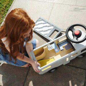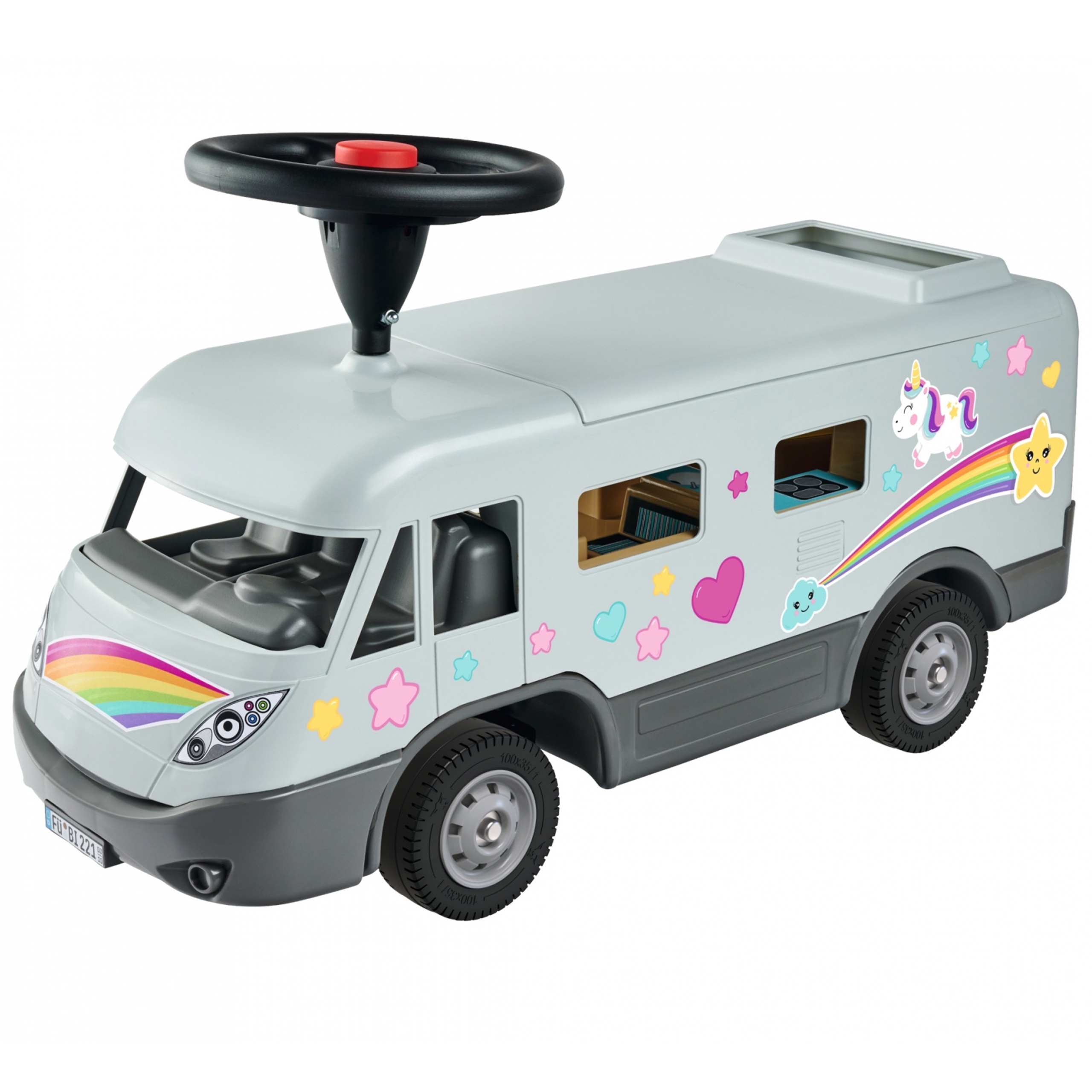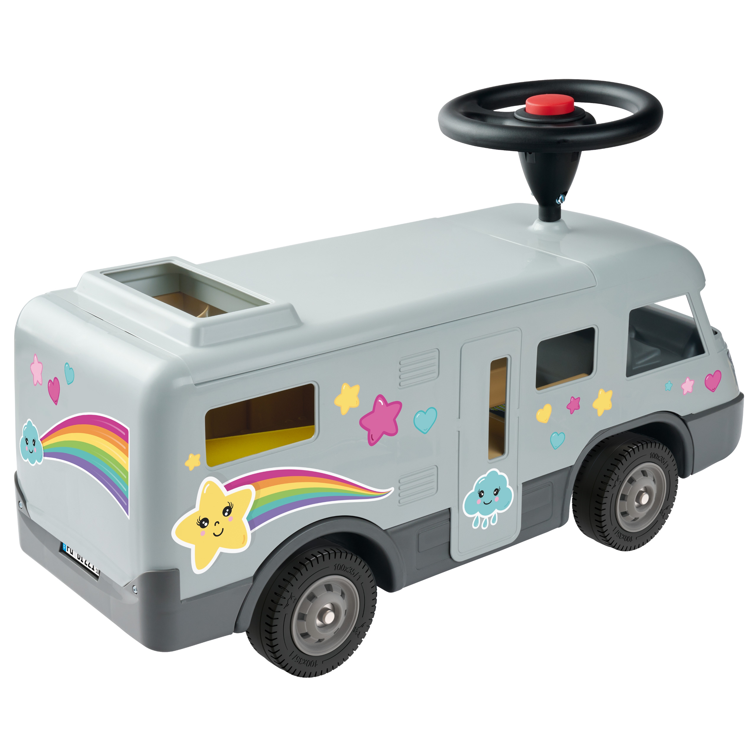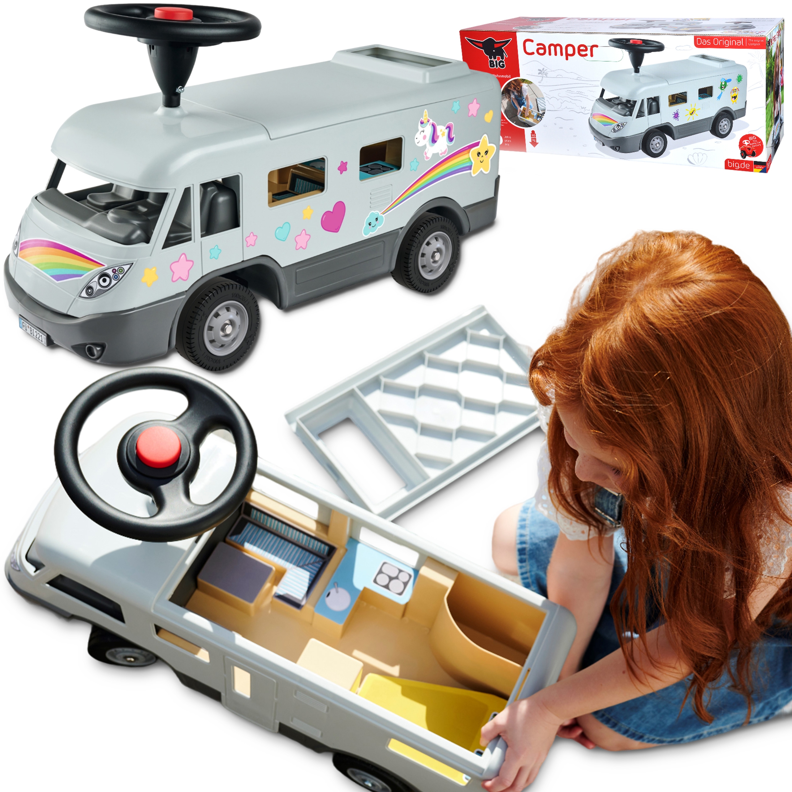 Maineka BIG firma Camper Ride-On on sõiduk, mis meenutab tõelist matkaautot. See on stabiilne ja turvaline – ideaalne lastele, kes alustavad oma seiklust sõidukitega. Matkaauto eemaldatav katus peidab endas avarat sisemust, mis annab piisavalt ruumi kuni 12 cm suurustele tegelaskujudele ja nukkudele. Nad saavad väikeste seiklejate reisidel kaasas olla ja on alati valmis neile lühikestel puhkepausidel seltsiks. Lõbusad kleebised võimaldavad individuaalset disaini. BIG matkaauto on varustatud ka kvaliteetsete vaiksete ratastega, mis on eriti meeldivad lapsevanematele ja mis võimaldavad väikestel juhtidel rahulikult mööda aedu ja lastetubasid ringi sõita. Tänu ülipehmetele mittejälgivatele plastrehvidele puudub ka oht põrandale jälgi jätta, mistõttu sobib matkaauto ideaalselt ka siseruumides kasutamiseks. Sõitmine on ehitatud selleks, et lapsed saaksid katsetada ja arendada uusi oskusi – peale-, maha-, tõukamis- ja roolimisoskusi. See on ideaalne kingitus lapsele alates 2. eluaastast. Omadused: – pealesõit on varustatud vaiksete ratastega, mis sobivad suurepäraselt erinevatele pindadele, – sellel on ruumikas panipaik, mis annab palju ruumi kuni 12 cm mänguasjadele. – omab spetsiaalseid vaikseid plastikrattaid ja sarve – komplektis on individuaalset disaini võimaldavad kleebised – pealesõidu vastupidav konstruktsioon, garanteerib pika kasutusea, – arendab lapse motoorseid oskusi, – mõeldud lastele alates 2. eluaastast.