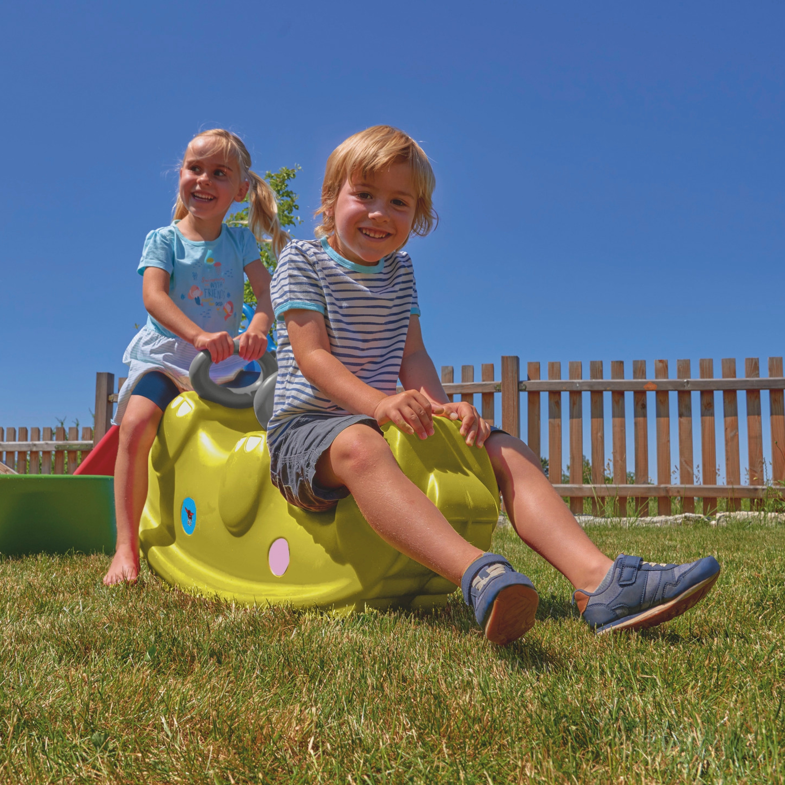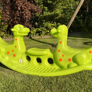 Sammy Dino Rocker kiik on mõeldud lastele alates 1. eluaastast. Selle ergonoomilised istmed tagavad mugavuse isegi pikemate kiikude ajal. Keskmine iste võimaldab ühel lapsel üksi mängida ning kolm istumisala võimaldavad ühiselt mängida õdede-vendade või sõpradega. Omadused: Kahepoolne konstruktsioon – ideaalne nii kiikumiseks kui ka kiikumiseks nagu kiikhobusel UV-filter – ilus roheline värv ei tuhmu ka pärast aastatepikkust õues kasutamist Vastupidav materjal – kahjustustekindel, turvaline ja mittetoksiline 3 istet – kiik kasvab koos lapsega ja sobib suurepäraselt ühiseks mängimiseks Ümarad servad – turvalisus ka kõige pisematele kasutajatele Stabiilsus raskustes 5 kg käepidemega. Dino Rocker on kerge ja hõlpsasti kaasaskantav – võid selle paigutada aeda, terrassile või lastetuppa. Ideaalne nii sise- kui välistingimustes kasutamiseks.