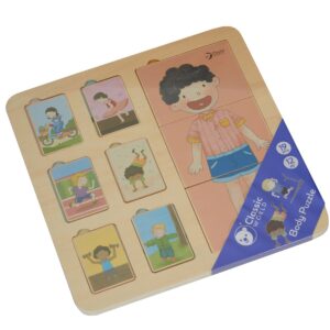 Classic Worldi puidust õpetlik pusle “Human Body” on põnev viis anatoomia õppimiseks lõbusalt aega veetes. Elemendid esitlevad organeid, luid ja lihaseid selges, sõbralikus vormis, tänu millele õpib laps kiht-kihilt keha ehitust. Üksikute elementide kokkupanek õpetab nimesid, funktsioone ja anatoomilist järjestust. Valmistatud kvaliteetsest puidust ja siledad servad tagavad turvalise ja vastupidava mängu. See on leidlik hariv kingitus, mis ühendab lõbu õppimisega. Omadused: – materjal: puit, värvitud ohutute värvidega – kihiline pusle – võimalus kokku panna järgnevaid anatoomilisi kihte – ohutuse tagamiseks siledad, ümarad servad – esteetiline töötlus ja üksikasjalikud, selged illustratsioonid Komplekti kuuluvad: – keha üksikud kihid: nahk, lihased, elundid, luustik – anatoomilised elemendid: aju, süda, kopsud, kiht, maks, mao ja teised, anatoomia ja struktuur keha – loogiline mõtlemine kihtide koostamisel – käelised oskused ja käe-silma koordinatsioon – uudishimu maailma vastu ja sissejuhatus bioloogiateadustesse – keskendumine ja täpsus elementide sobitamisel