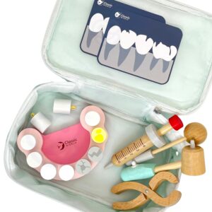Muutke oma hirm hambaarsti ees põnevaks lõbusaks puidust hambaravikomplektiga CLASSIC WORLD! See realistlik rollimänguasi on suurepärane võimalus tutvustada oma last arsti külastamise ja suuhügieeni olulisusega. Komplekti kuuluvad kõik vajalikud tarvikud, sh liigutatavate hammastega lõuamudel, süstal, pintsetid ja peegel, mis on pakitud esteetilisesse riidest kotti. Hambaarsti mängimine toetab teie lapse empaatia, loovuse ja käeliste oskuste arengut. Kvaliteetne puit ja turvaline viimistlus garanteerivad kestva ja hariva meelelahutuse! Omadused: – Rollimängukomplekt – Väike hambaarst. – Valmistatud kvaliteetsest puidust, värvitud ohutute värvidega. – Rikkalik tööriistade komplekt ja lõualuu mudel, millel on võimalus simuleerida hambaravi. – Toetab suutervise ja -hügieeni alast koolitust. – Kõik elemendid on pakitud praktilisse lukuga kangaskotti, mis sobib suurepäraselt hoiustamiseks ja kaasa võtmiseks. Komplekti kuulub: – 1x Lõualuu/suu mudel hammastega raviks. – 1x süstal kaaluga. – 1x puidust pintsetid/haardetangid. – 1x hambapeegel. – 2x röntgenkaarti hammaste vaatega. – 1x hoiukott/kohver. Mänguasi arendab: – Sotsiaalseid oskusi ja rollimängu. – Empaatia ja emotsioonide mõistmine (arstihirmu taltsutamine). – peenmotoorika ja liigutuste täpsus. – Kujutlusvõime ja loovus. – Kognitiivsed teadmised (terviseõpetus).
