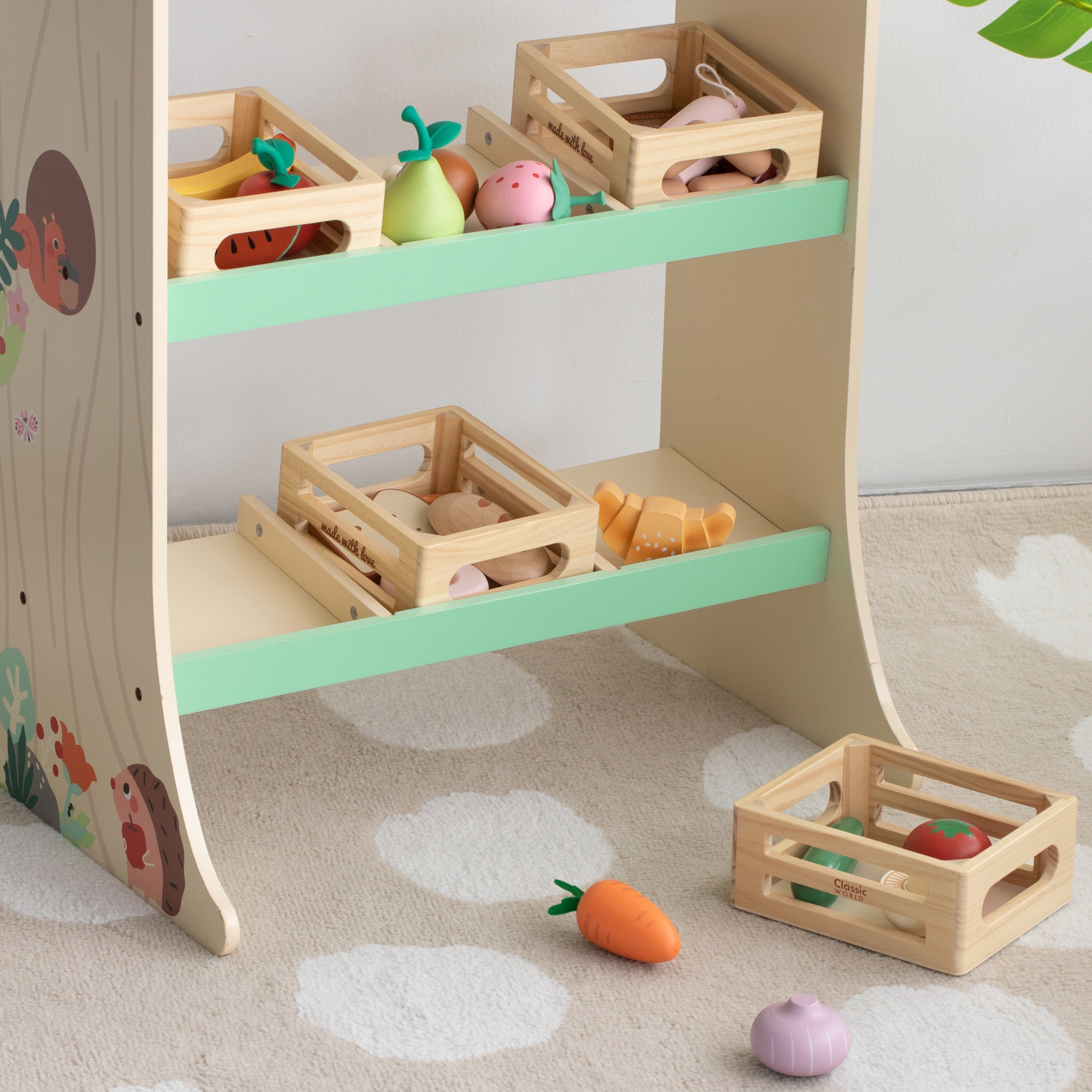 Classic Worldi küpsetiste korv on komplekt lastele, kes armastavad loomingulist mängu köögis, poes või pagariäris. Erinevat tüüpi leiba imiteerivad puitelemendid võimaldavad mängida vaba rollimängu, arendada kujutlusvõimet ja sotsiaalseid oskusi. Iga komplekti komponent on valmistatud kvaliteetsest puidust. Komplekt sobib suurepäraselt nii iseseisvaks mängimiseks kui ka koostööloomeks eakaaslaste või täiskasvanutega. Omadused: – Valmistatud kvaliteetsest puidust – Sobib suurepäraselt mängimiseks poes, pagariäris või köögis – Värvilised elemendid tõmbavad tähelepanu ja julgustavad mängima Komplekti kuuluvad: – Puidust korv – Leivapäts – Röstsai – Sõõrik – Kringel – Croissant Mänguasi arendab: – Kujutlusvõimet – Loovust – Sotsiaalseid oskusi