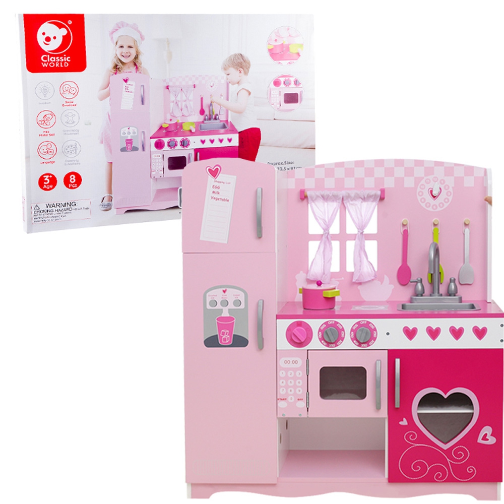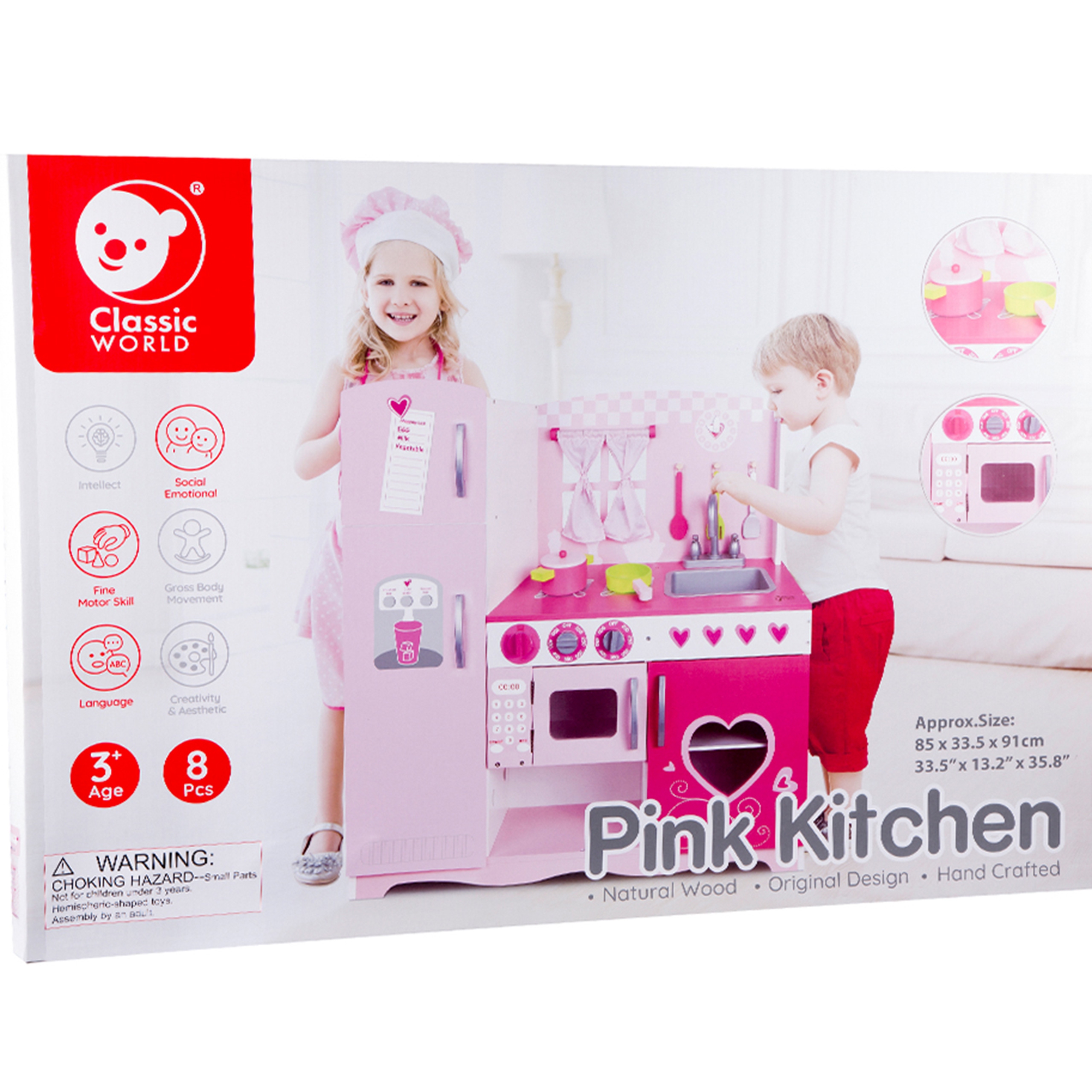 Ilus köök klassikalisest maailmast on suurepärane võimalus lastele, kes soovivad igapäevaelus erinevaid rolle mängida. Lapsed saavad tunda, et nad on tõelised kokad ja kogu perele mõeldud roogade valmistamise lõbu on lõputu. Master Chef Junior pole enam ainult teles 🙂 Omadused: – Kvaliteedi ja ohutuse huvides on mänguasi valmistatud valitud kvaliteetsetest materjalidest, mis on mõeldud eelkõige väikelastele. – Mänguasi on disainitud nii, et sellel ei oleks teravaid servi ega ohtlikke elemente – Mänguasi julgustab mängima täiskasvanute käitumist imiteerivaid stseene, arendades sotsiaalseid oskusi. – Lapsed ise mõtlevad välja oma rollid, mida mängida. – Selline ilus köök näeb hea välja mitte ainult lastetoas, vaid ka elutoas, rõõmustades kõiki leibkonnaliikmeid. Komplekti kuuluvad: – Külmkapp sügavkülmikuga – Kahe nupuga ahi programmi ja küpsetustemperatuuri seadistamiseks – 2 põletiga pliidiplaat – Kraaniga kraanikauss – Kardinaga aknad + kell – Lisakapp – Potid + kööginõud Mänguasi arendab: – käe-silma koordinatsiooni, – kujutlusvõimet, – sotsiaalseid oskusi, – loovust, – uudishimu. Ökomänguasjad on suunatud kõige väiksematele lastele ning on valmistatud täiesti looduslikest, biolagunevatest ja hüpoallergeensetest materjalidest, muutes need 100% ohutuks ja kahjutuks mitte ainult keskkonnale, vaid ka teie lapsele. Classic World on tunnustatud mänguasju tootev ettevõte. Ettevõte seab teistele tootjatele lati eelkõige kõrge töötluskvaliteediga. Teame, et lapsed väärivad ainult parimaid mänguasju. Classic World tagab selle läbi range kvaliteedikontrolli ja tootmisprotsessi. Ettevõte toetab rahvusvahelisi kvaliteedistandardeid.