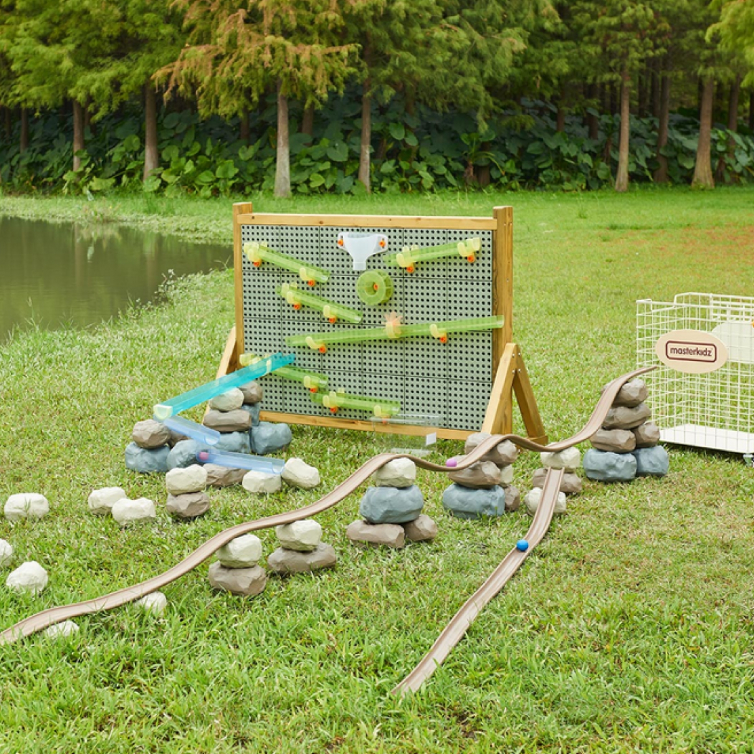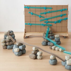 Flexible Ball Track on kerged ja turvalised painduvast plastikust konstruktsioonielemendid. Need on mõeldud loominguliseks mängimiseks, võimaldades ehitada tugesid, takistusi ja erinevaid konstruktsioone võidusõiduradade ja gravitatsioonikatsete jaoks. Kive saab vabalt paigutada, et luua unikaalseid radu või struktuure, mis toetavad paindlikku rada. Need sobivad suurepäraselt vahendiks üksi või grupis mängimiseks, julgustades koostööd ja loovust. Omadused: – koostage oma marsruudid ja katsetage gravitatsiooni. – Ehituskivid ja painduv rada on lastele täiesti ohutud. – Ideaalne sise- ja välistingimustes kasutamiseks. – Soodustab loogilist mõtlemist, koostööd ja katsetamist. Komplekti kuulub: – 96 ehituskivi 3 erinevas suuruses ja värvitoonis – 2 painduvat roomikut, pikkusega 2 m ja 3 m. Mänguasi arendab: – Loovust – Kujutlusvõimet – Iseseisvust – Peenmotoorikat