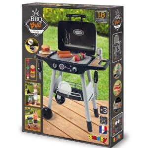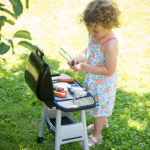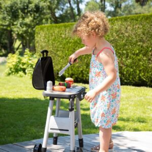 Lapsed armastavad õues aega veeta. Nad armastavad ka süüa teha. Mis siis, kui ühendaksite need kaks naudingut? Selleks sobib suurepäraselt grill. Ilusa ilmaga veedame tavaliselt palju aega väljas. On oluline, et meie lastel oleks kiire aeg. Grill muudab nende lõbu atraktiivsemaks – see võimaldab valmistada sõpradele hamburgerit või vanematele šašlõkki. Omadused: – grillil on kaks ratast – et laps saaks seda hõlpsasti liigutada, – sellel on rest, millest pool on mugav küpsetusplaat, – külgedel kaks riiulit võimaldavad turvaliselt paigutada valmisnõusid või selleks vajalikke tarvikuid, – komplektis on koguni 18 tarvikut, – šašlõkk ja hamburger – mis lastele meeldib, kõlab, kui kerge, – mis tahes viisil – grill põleb, – oranžid leegid jäljendavad tuld, – nupud teevad sisselülitamisel häält, – grilli esiosas on konksud, kuhu saab riputada vajalikud tööriistad.