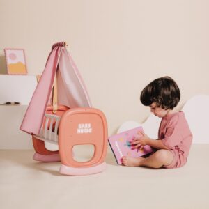 Varikatusega Beebiõe häll on ideaalne vidin igale väikesele hooldajale! Beebiga mängides saab laps nuku magama panna ja hälli kiigutada, arendades empaatiat ja kujutlusvõimet. Väikese mustriga kaunis riidest varikatus ja tüdrukulikud värvid teevad hällist toa kaunistuse. Kvaliteetsed materjalid ja ümarad vormid tagavad mänguasja ohutuse ja vastupidavuse. Komplekt võimaldab lapsel meeldivas väärtuslikus mängus arendada loovat mõtlemist, vastutustunnet ja iseseisvust. Omadused – Nukkudele u. 42 cm kõrgune – Komplekti ei kuulu nukk – Ümardatud servad tagavad turvalisuse – Ilusad, tütarlapselikud värvid – Peene mustriga riidest varikatus – Täiskasvanu poolt kokkupandav – Kollektsioon Baby Nurse – Valmistatud Prantsusmaal – Mõõdud: u. 69 x 47 x 28 cm