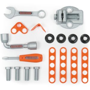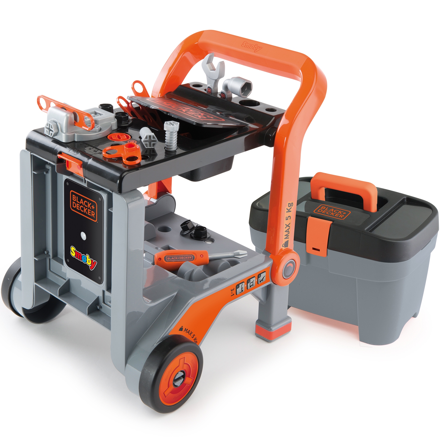 Panipaigaga teisaldatavat lauaplaati saab seada 3 asendisse. Komplekti kuulub: – kahel rattal käru, – tööriistakohver, – 18 tarvikut: mutrivõti, kruustang, pesavõti, kruvikeeraja, kruvid ja palju muud. Vanus: alates 3 eluaastast. Kaal: 2 kg. Isemonteeriv komplekt.