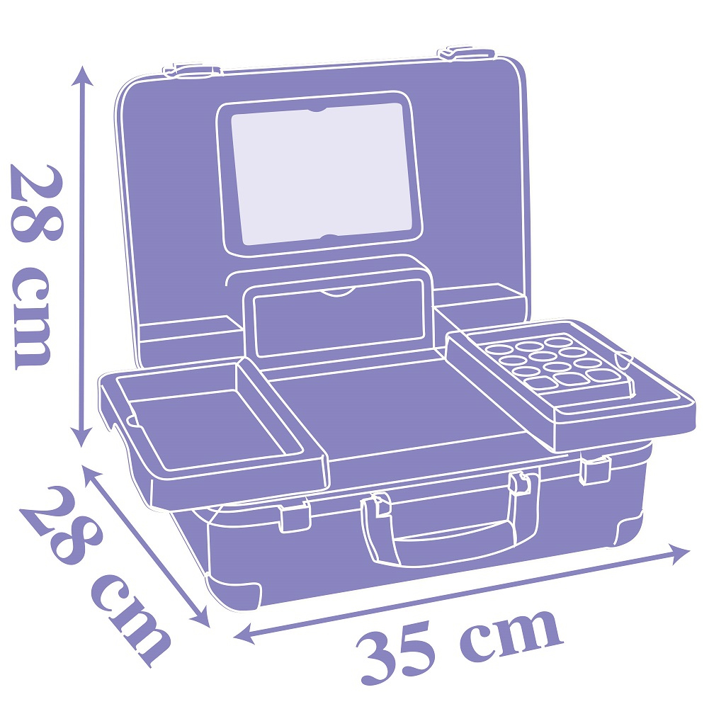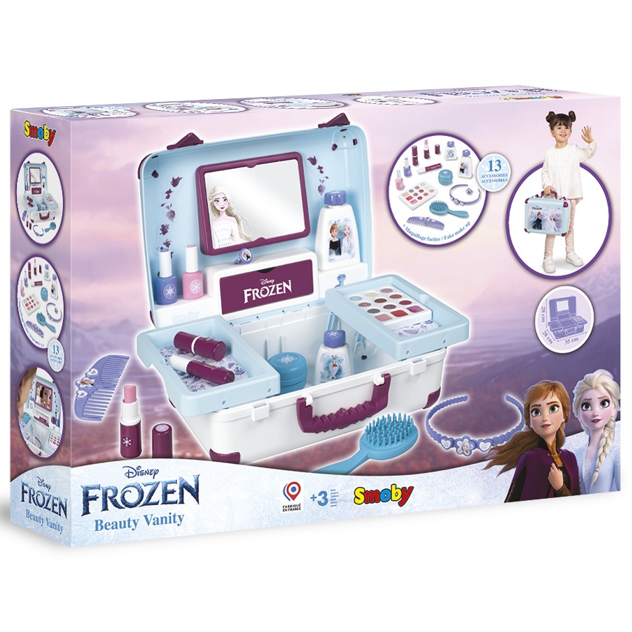 Lastele meeldib täiskasvanuid jälgida ja jäljendada. Kohvrikomplektis Ilusalong ühendab endas 3 maailma – juuksuritöö, maniküür ja meik. Komplektis on 13 ehtsat kosmeetikat imiteerivat tarvikut. Tänu selle kompaktsetele mõõtmetele ja käepidemele saab selle kohvristuudio kaasa võtta peaaegu kõikjale. Omadused: – kohver ühendab endas 3 maailma – juuksur, maniküür ja meik, – Frozeni poolt litsentseeritud kohver, – komplektis on 13 lisatarvikut: lauvärvipalett, 2 küünelakki, 2 huulepulka, ripsmetušš, kamm, juuksehari, peapael, sõrmus, parfüümipudel, – kõik tooted ei sisalda juukseid, kreem, aksessuaarid mis võimaldab hoiustada kõiki tarvikuid, – kohvristuudio saab tänu oma kompaktsetele mõõtmetele ja käepidemele praktiliselt kõikjale kaasa võtta.